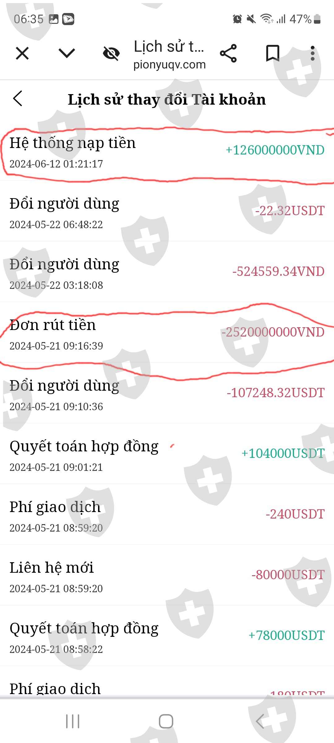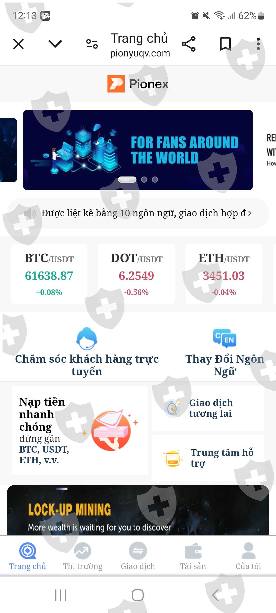 Tôi tham gia vào sàn Pionex ( https : www.pionyuqv.com ) vào ngày 13/5/2024 đến nay , hôm 21/5/24 tôi có giao dịch và kiếm được 2.520.328.000 VND , nhưng sàn yêu cầu đóng thuế 20% trên lợi nhuận , sau khi đóng thì lại đòi tiếp 5% phí bảo đảm không rửa tiền , đóng xong 5% thì lại yêu cầu đóng 8% phí chuyển đổi USDT -> VND , tôi thấy không ổn nên không tiếp tục đóng mà liên hệ với bộ phận cskh hỏi rõ quy định về giao dịch này thì họ chẳng những không trả lời mà còn chặn luôn ID của tôi để không liên lạc được . Từ 13/6/24 đến nay tôi không thể liên lạc được với họ , rất mong mọi người giúp đở và tránh xa nếu muốn giao dịch với cái sàn này .