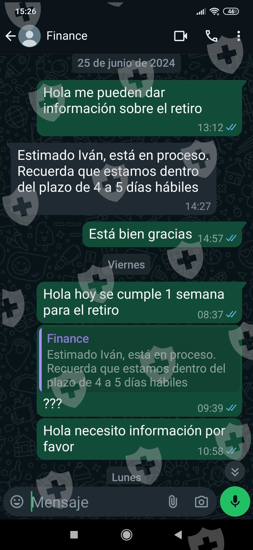 hace más de una semana me pidieron depósito para retirar que en 5 días Avilés y es la hora que nada se a resuelto ya no me contestan los mensajes