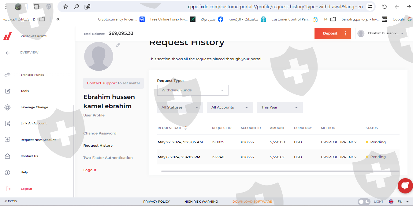 I requested to withdraw $5,550 since last May 6, and the amount has been deducted from my account and I have not received it yet, in addition to procrastination from support. After all this, no one responds from support. Despite all this, withdrawal and deposit methods have been closed from the customer area, and no one responds to any email or email. Live Chat Broker violated all financial conduct rules and I do not recommend dealing with them