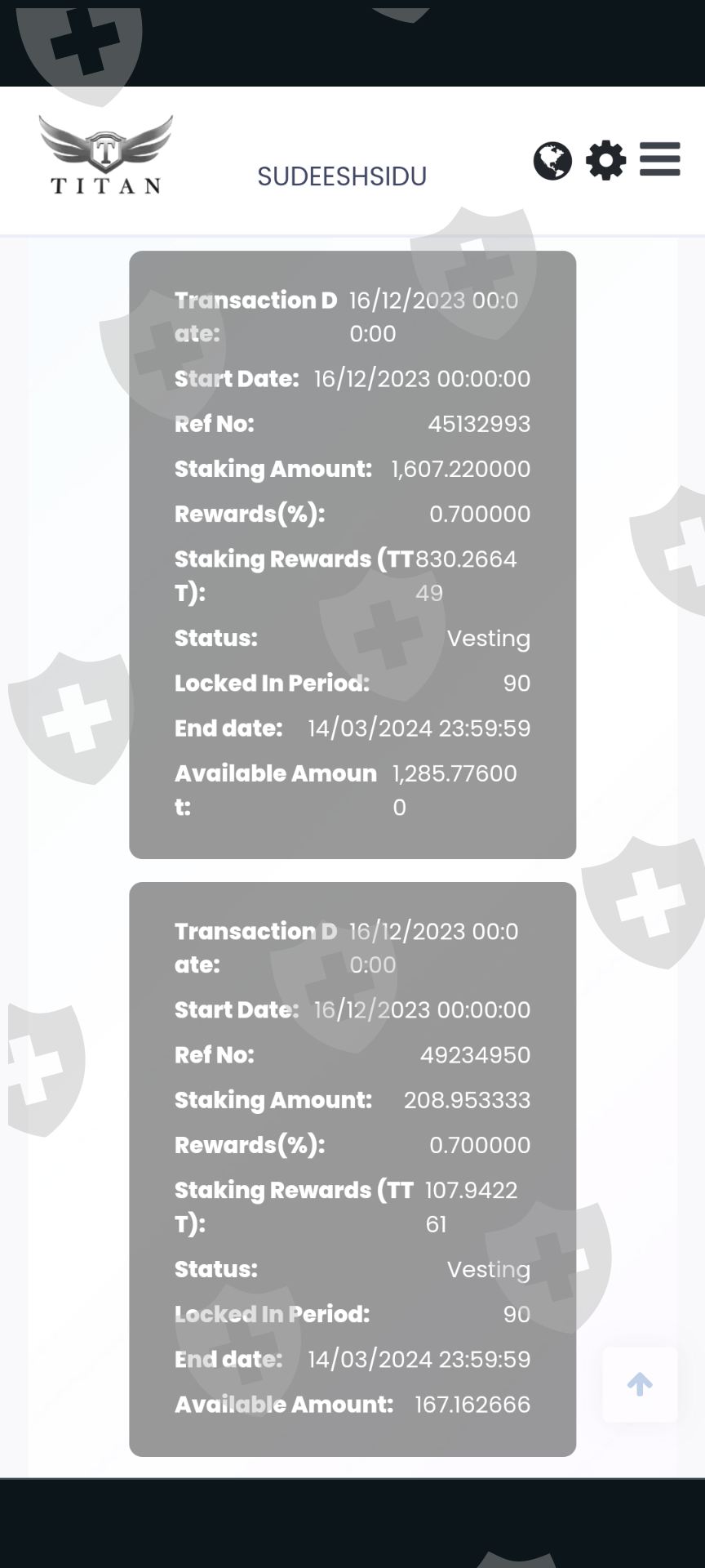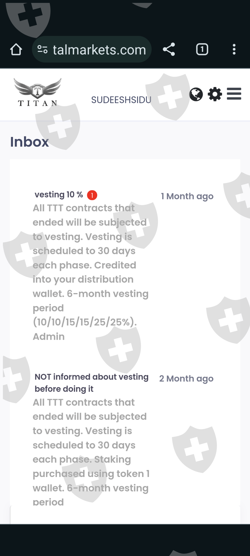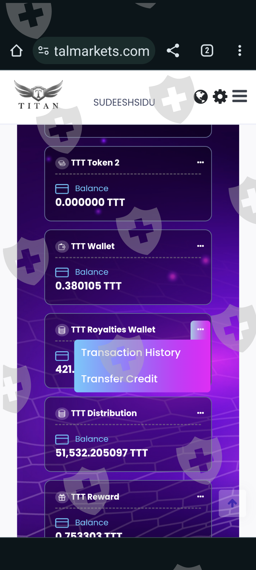 I invested 8000 USDT in the Titan capital market but I can't withdraw the TTT form the distribution wallet and Royalties wallet,,they haven't given the access for the withdrawal form distribution wallet,,,also the TTT rate they made it zero and they had done vesting of my fund and not releasing after the contract.I would like you to get compensation form them and return back my full money as soon as possible. My account user name is Sudeeshsidu