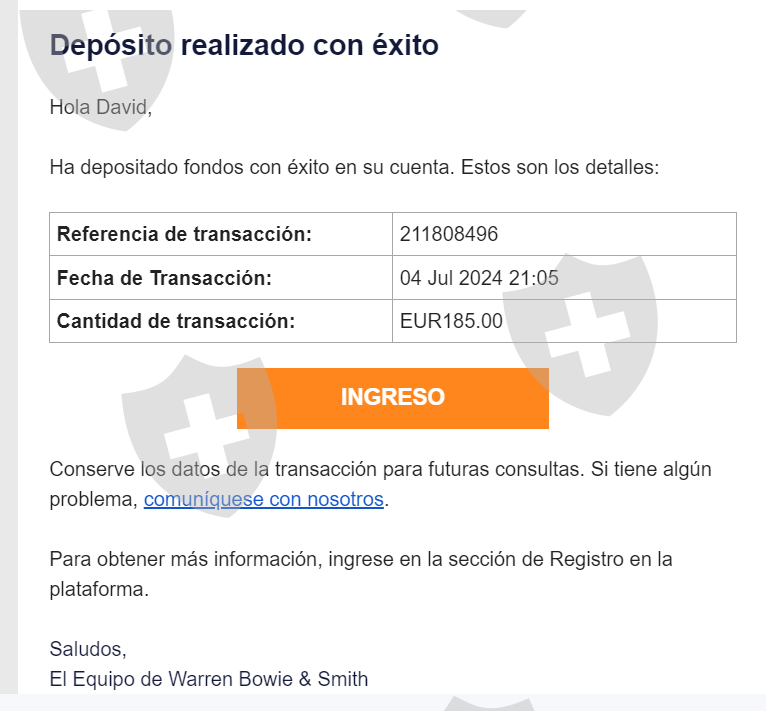 Mi nombre es David Herrera Luna, ciudadano costarricense, igresé 200$ a la cuenta de Warren Bowie & Smith, sin embargo, me percaté de la situación de otros usuarios respecto a estafas, por lo que decidí querer retirar mi dinero, pero me encuentro con que la plataforma no me deja y me solicita información que no deseo brindar, por ejemplo, fotos de parte frontal y reversa de mi tarjeta de débito.
