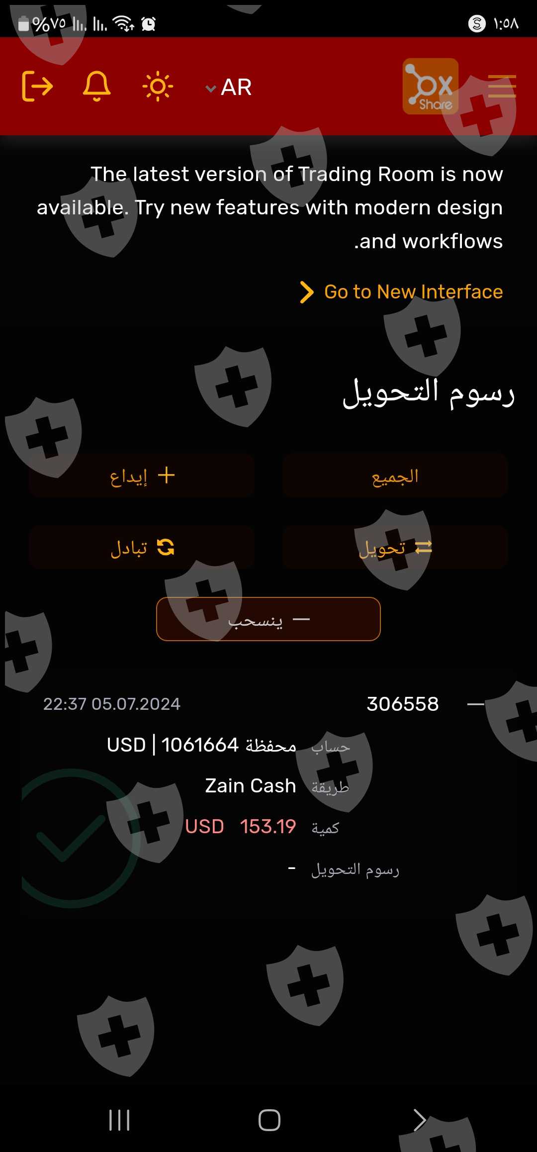 مرحبآ انا أحد مستخدمي منصة oxshare أودعت أموال في محفظة المستخدم وقمت بالتداول ولكن أردت أن اسحب اموالي من oxshare يقول لي تمت عملية السحب ولكن اموالي لم أحصل عليها?????
