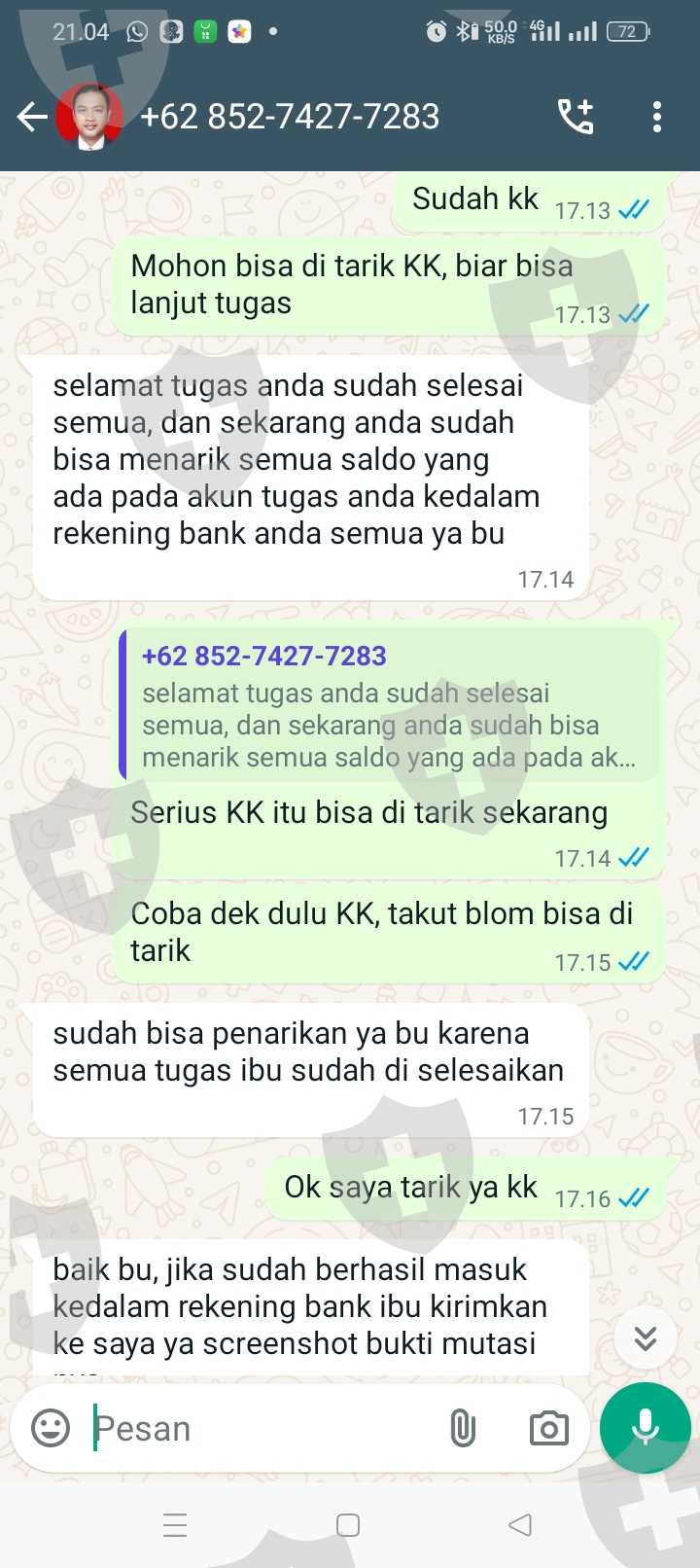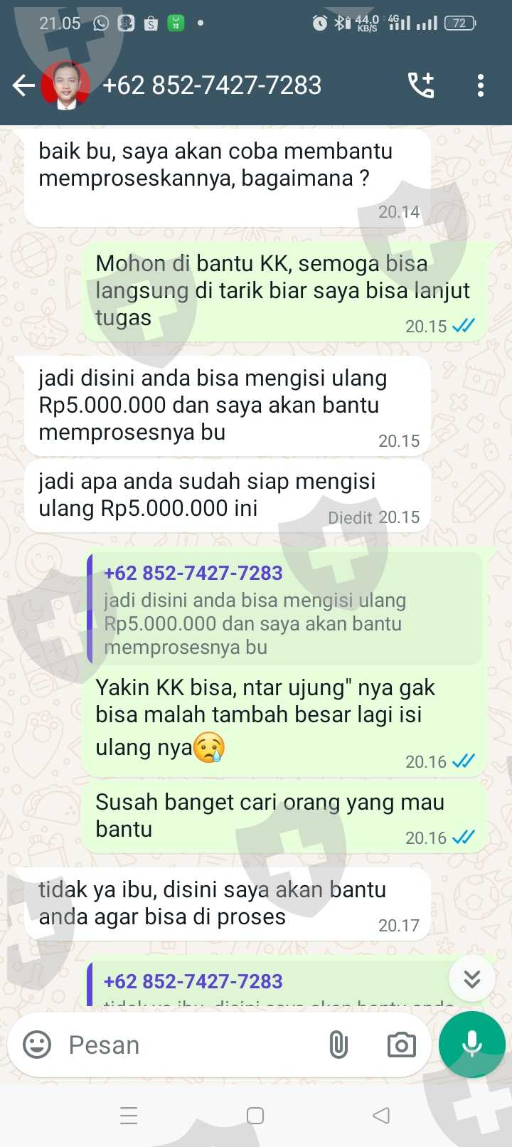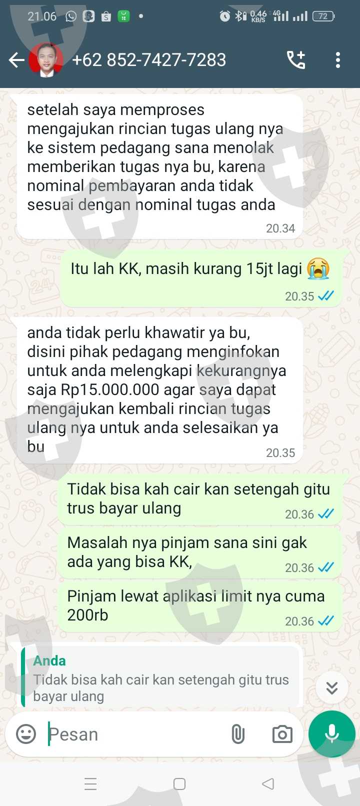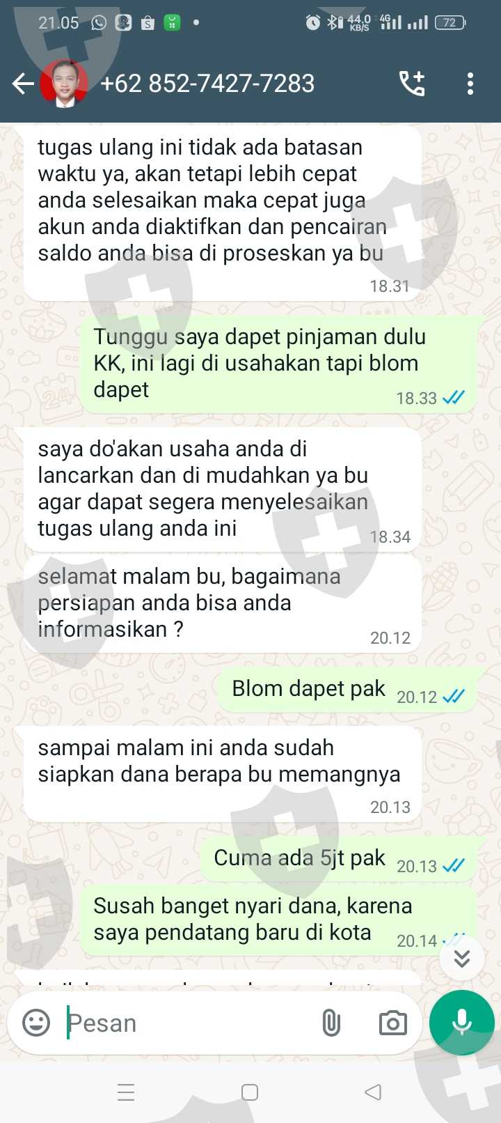 Tolong di bantu KK, saya sudah melakukan semua tugas nya, isi ulang terus aku kira bisa di tarik ternyata enggak, mohon bantuannya KK, saya sampai meminjam uang aku kira uang nya bisa di tarik dan sampai sekarang aku gak bisa narik, di suruh isi ulang 20jt, biar bisa narik, karena aku gak tau jadi aku kirim 5jt, karena katanya bisa di bantu, tapi ternyata enggak, saya harus mengumpulkan 15jt lagi, tapi aku takut malah jadi panjang nanti dan aku sekarang terlilit hutang, mohon bantuannya kk