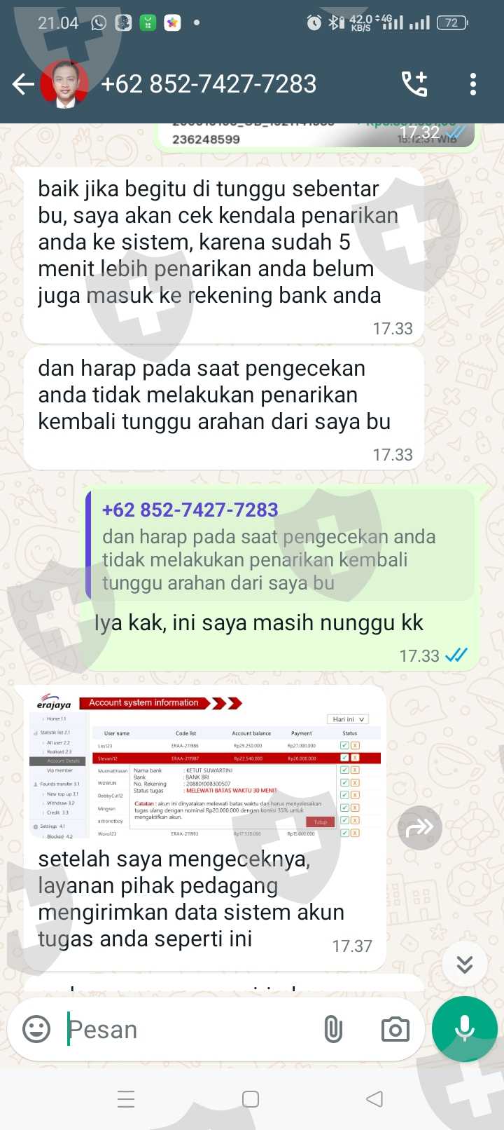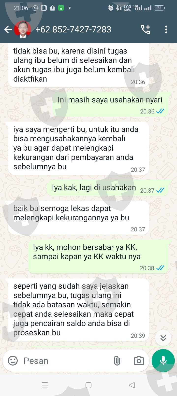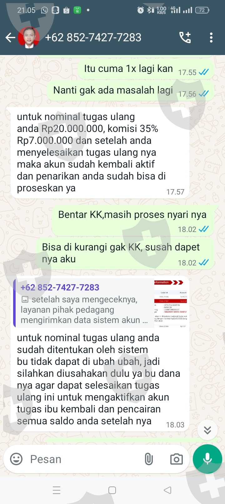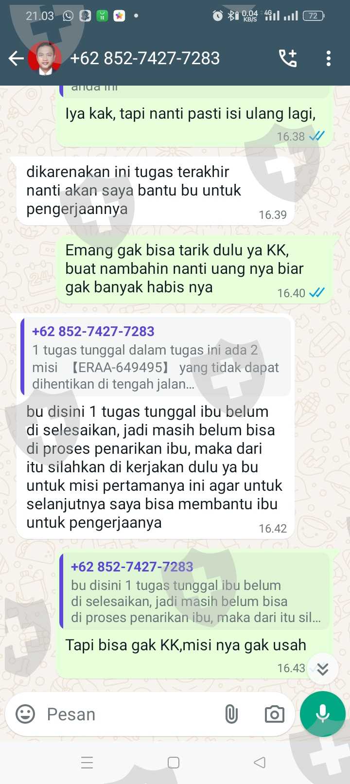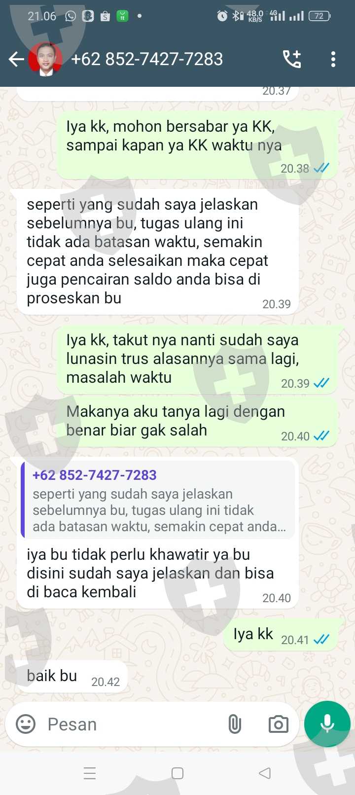 Tolong di bantu KK, saya sudah melakukan semua tugas nya, isi ulang terus aku kira bisa di tarik ternyata enggak, mohon bantuannya KK, saya sampai meminjam uang aku kira uang nya bisa di tarik dan sampai sekarang aku gak bisa narik, di suruh isi ulang 20jt, biar bisa narik, karena aku gak tau jadi aku kirim 5jt, karena katanya bisa di bantu, tapi ternyata enggak, saya harus mengumpulkan 15jt lagi, tapi aku takut malah jadi panjang nanti dan aku sekarang terlilit hutang, mohon bantuannya kk