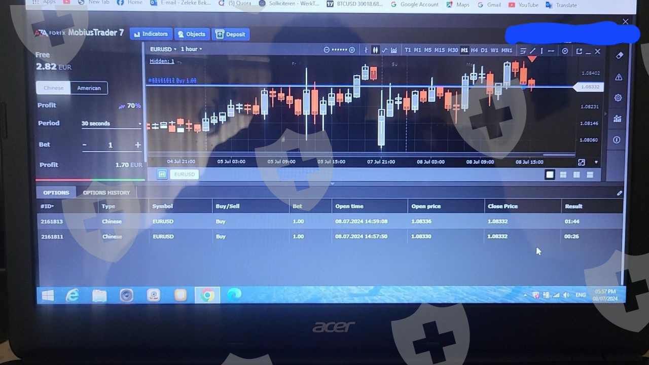 进一步分析:如果没有操纵,并且开盘选项交易的收盘价与正确图表的收盘价1.08286匹配,考虑到我的初始执行价格是1.08295,并且交易类型为卖出/看跌,那么我本应该赢得这次交易!然而,由于这种操纵,我遭受了损失。