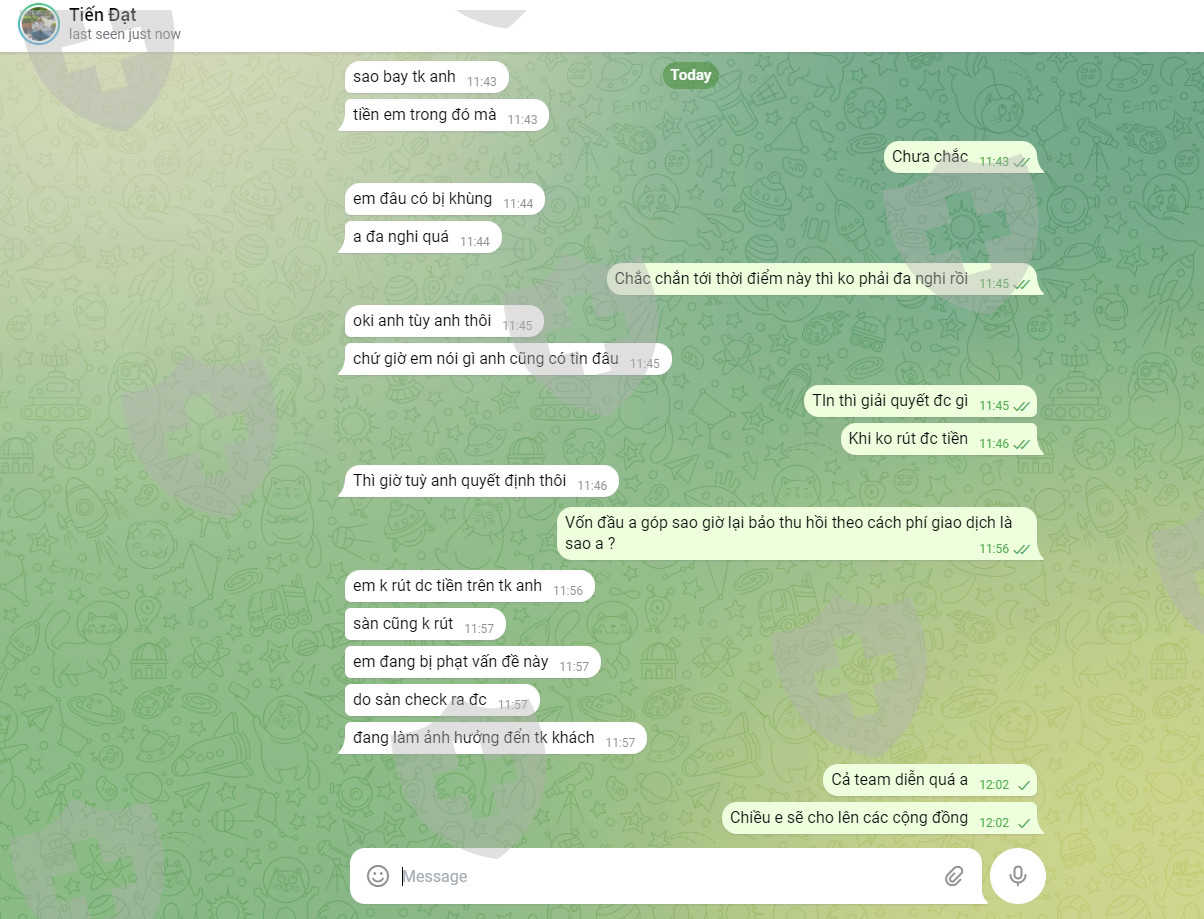 Sàn này hoàn toàn là lừa đảo vốn gốc củ tôi 20k toii đầu tư tổng vốn lên hơn 90k mà rút tiền cả tháng ko nhận được, gọi nhân viên hỗ trợ thì đùn đẩy rồi cho người đánh tài khoản tele và zalo. mong mọi người trước khi gửi vốn đầu tư nên tìm hiểu kỹ và tránh bị mất tiền