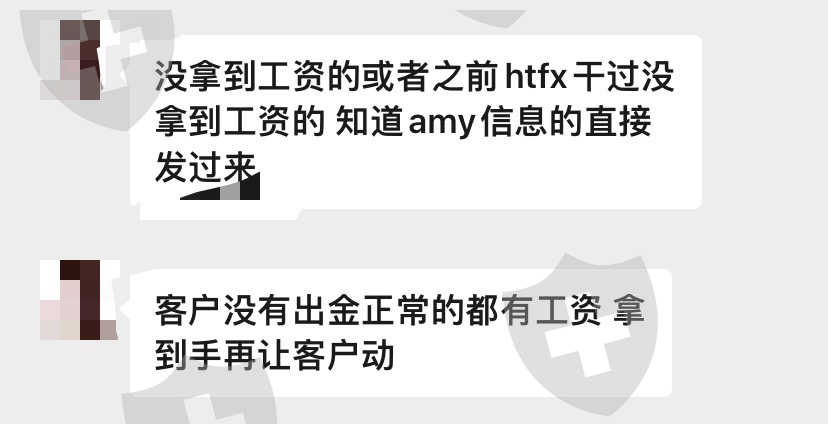 投诉HTFX负责人吃员工工资,一开始招人是利用无责招收员工。过了一个礼拜就说有责的,必须要达到净入金要求才能拿到工资,再到月初说只要出了部分资金的就一定也没有工资,自己的平台在7月3号MT4.5出现连接问题,丝毫不提,就一句月初出了资金的没有工资,以为这样就结束了,到了发工资的时候,说我们团队一个人都没有达成要求,(这里就是不想给,因为完成净入金要求且没有出金的还有)这个时候骚操作又来了,说7月份没有开发出代理的没有。最后在10号左右说有三个人有工资,一直拖拖拖,拖到今天也才给了一个人,而且在周五的时候就给我们解释说,不可能的,现在不可能有工资,因为平台早在月初就算好了的,不可能为了几个人在10号的时候再去算。那么,请问,平台在月初就发了工资,为什么我们的不开始不承认有人达标,到后面的说4个人,再到三个人,最后实际到的也就1个人,而且,还是支付宝发工资。就是你们拿了,不想给罢了。对于这种必须曝光出来,让大家以后敬而远之