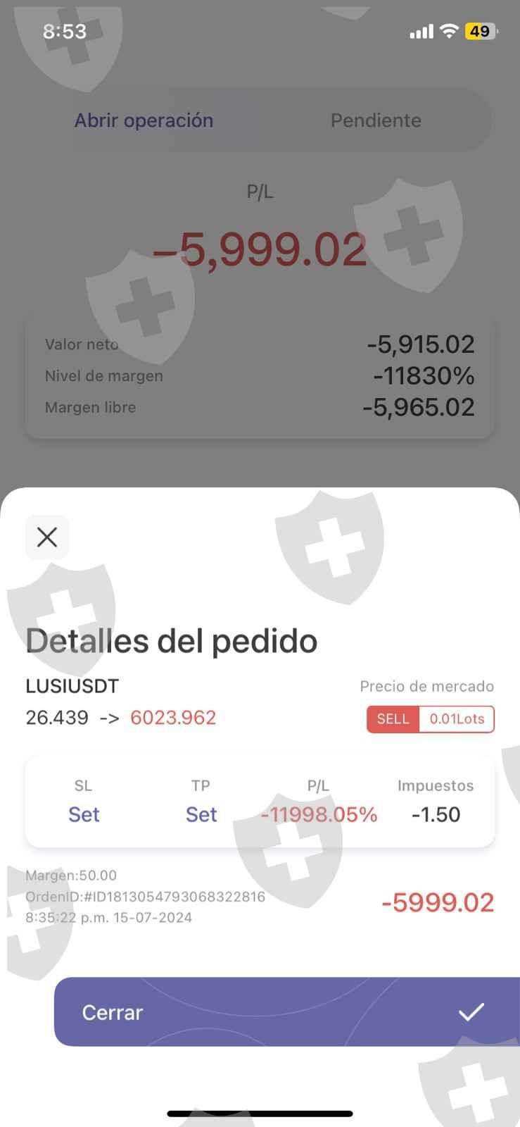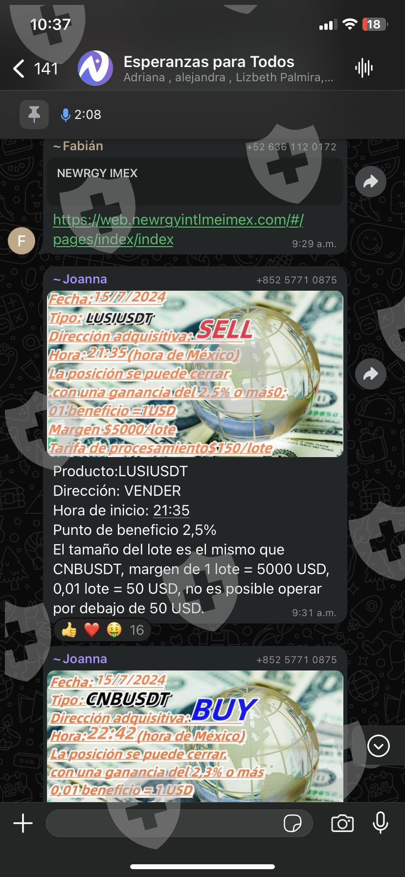 Iba empezando a invertir con un grupo de gente, teníamos una líder se hace llamar “Joanna”, que nos dijo el día lunes 15 de julio del 2024 invirtiéramos en una moneda que se llama LUSIUSDT y que íbamos a vender (sell) seguimos las instrucciones tal cual y de 1.0% se fue a -11998.05% yo solo invertí el mínimo 50dolares pero perdí todo, tenia 84 dólares en mi cuenta y ahora estoy en numero rojos.