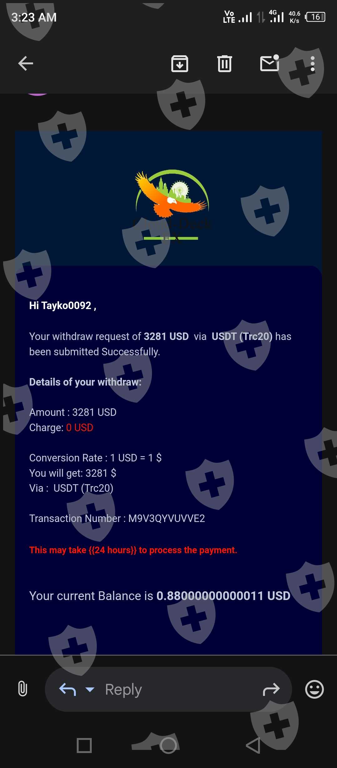 I refuse all of that but he sent it to nowhere now all my money gone 😞