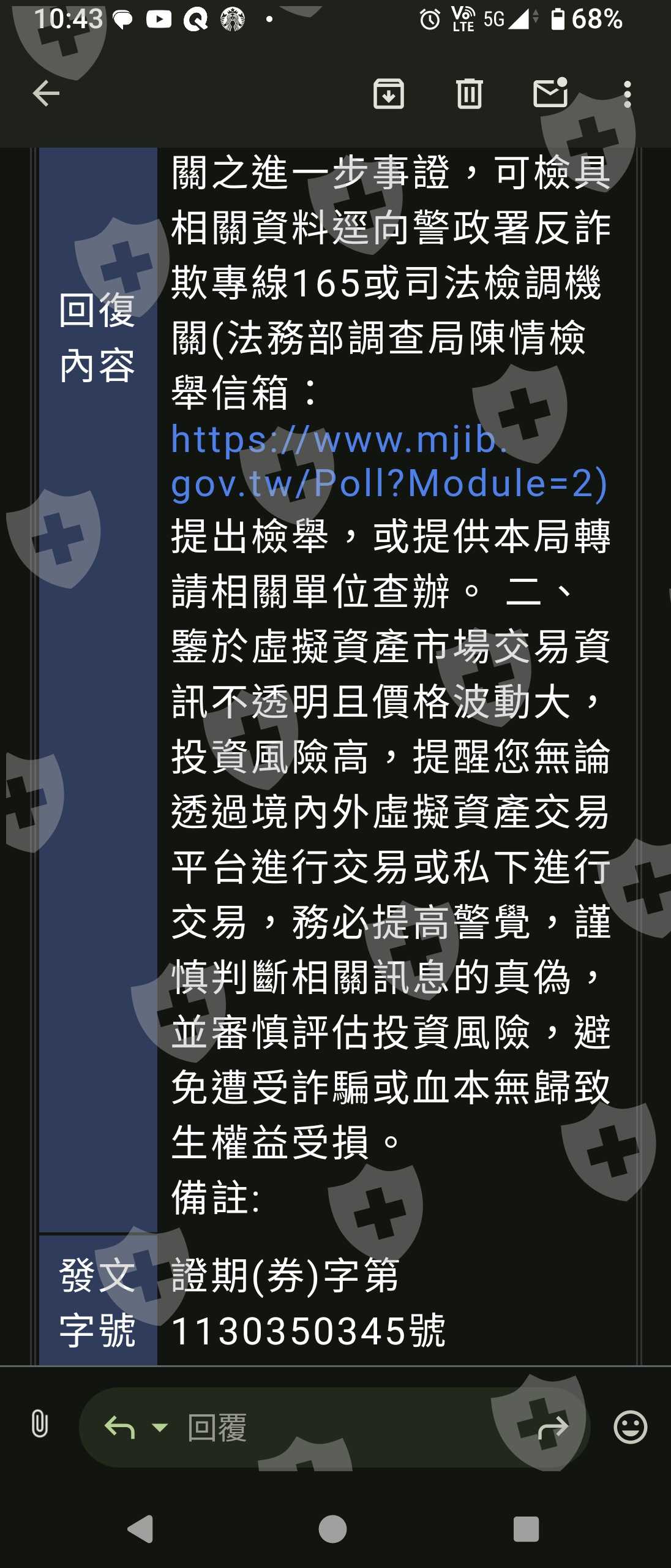 因為這句話我問了165,證期局回信說是詐騙,已報案。