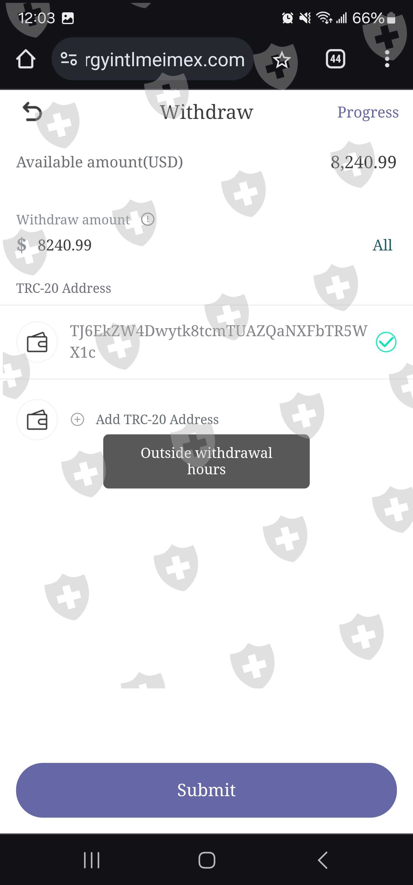 Unable to withdraw