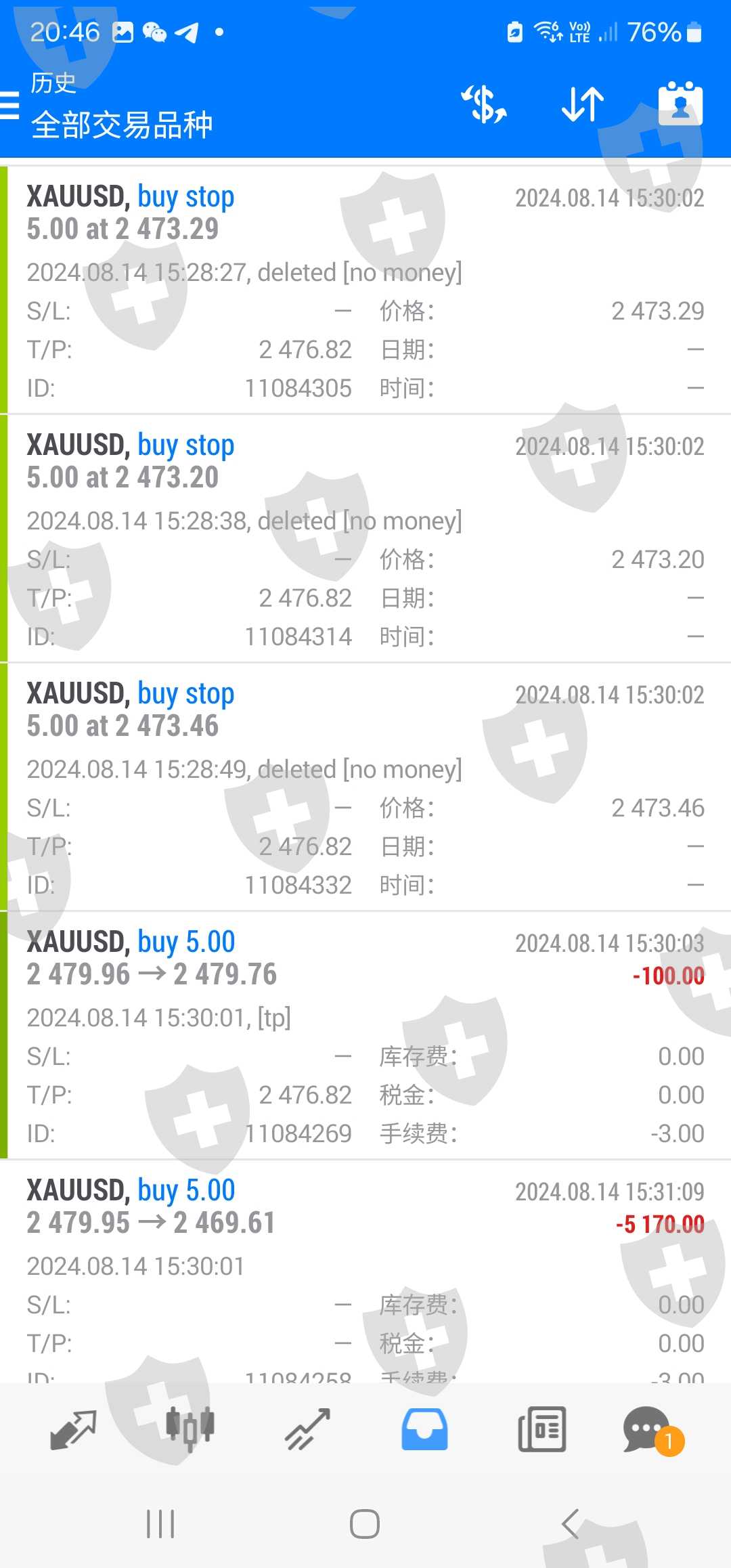 开了五张挂单,3张在2473,止盈在2476三张被取消2张2473被改2479直接被收割
