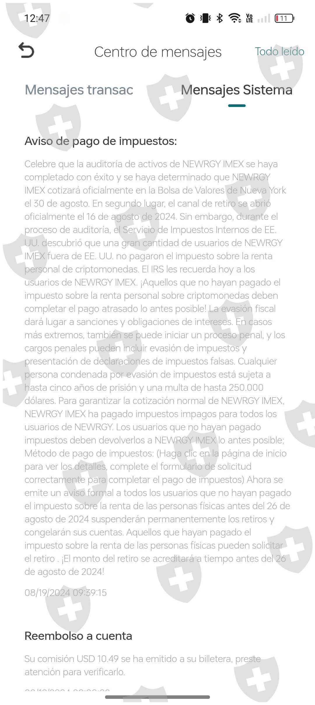 NEWRGY IMEX:潜在欺诈和资金冻结