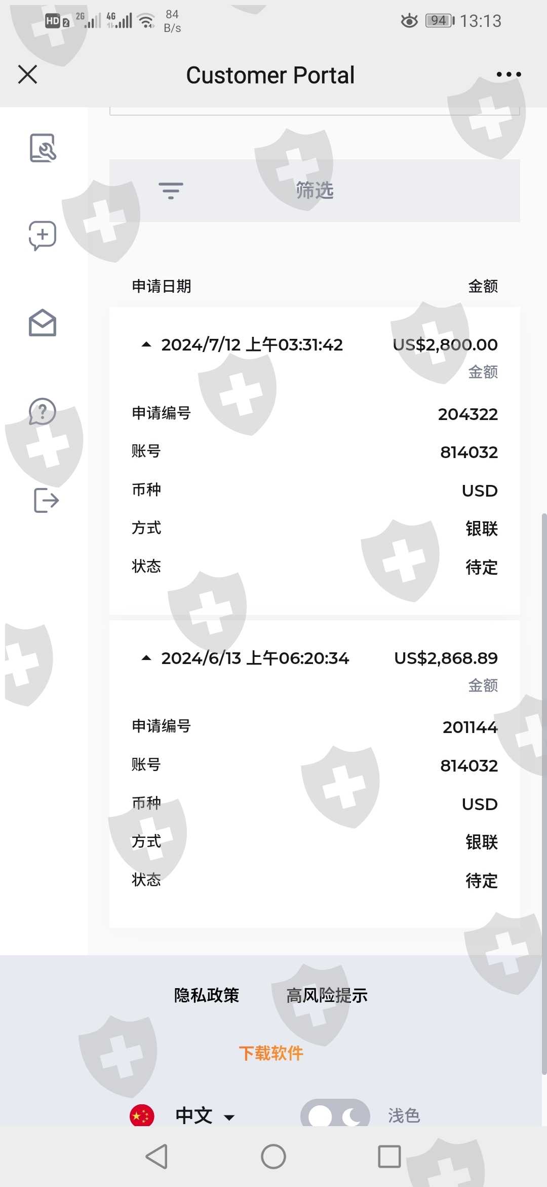 两个多月了,两次出金,一直是待定状态,救命的上啊!😭