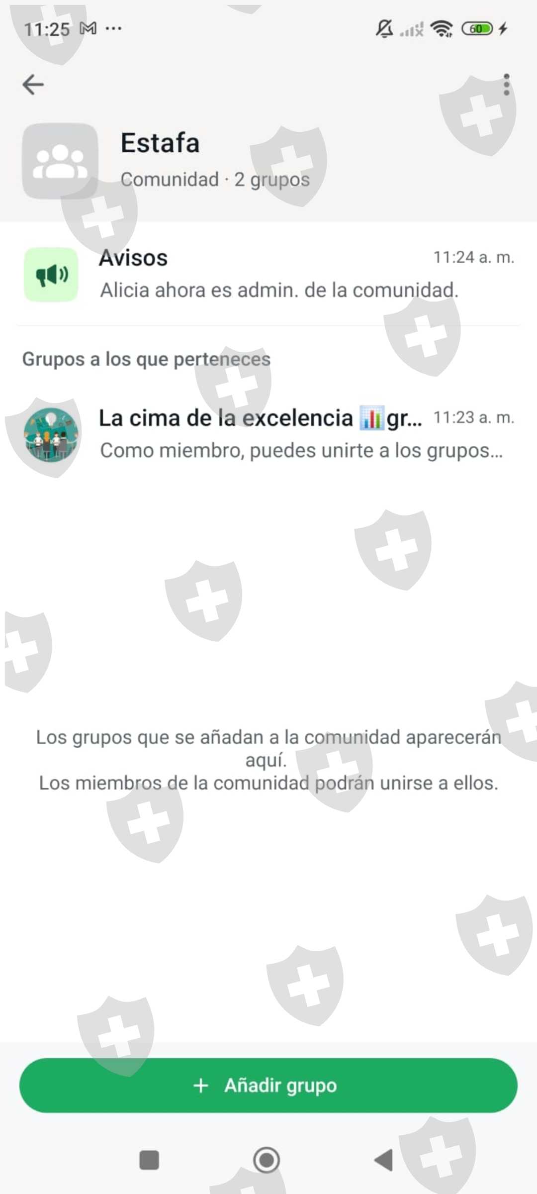 我们遭遇了拒绝,并且群管理员提出支付10%的费用。但是没有人再相信了。一位请求信息的同事收到了威胁,最近同一管理员又做了一个错误的举动,创建了另一个名为“ESTAFA”(西班牙语中意为“骗局”)的群组,并在意识到后将其删除。幸运的是,有截屏证据。