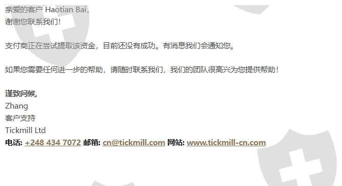 Tickmill平台数字货币入金不到账,被支付商私自挪用,长达七个月时间不处理