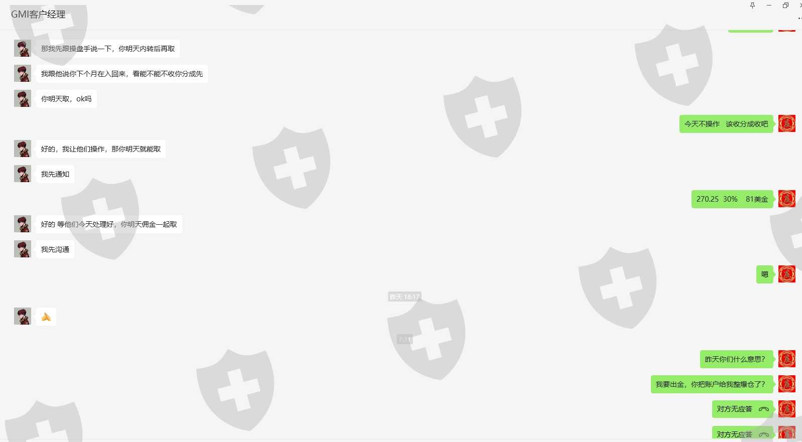 客户经理私下搞跟单平台,提前告知要出金,当天要求不要出金,等第二天再出金!然后当天晚上就让账户爆仓,故意吃客损