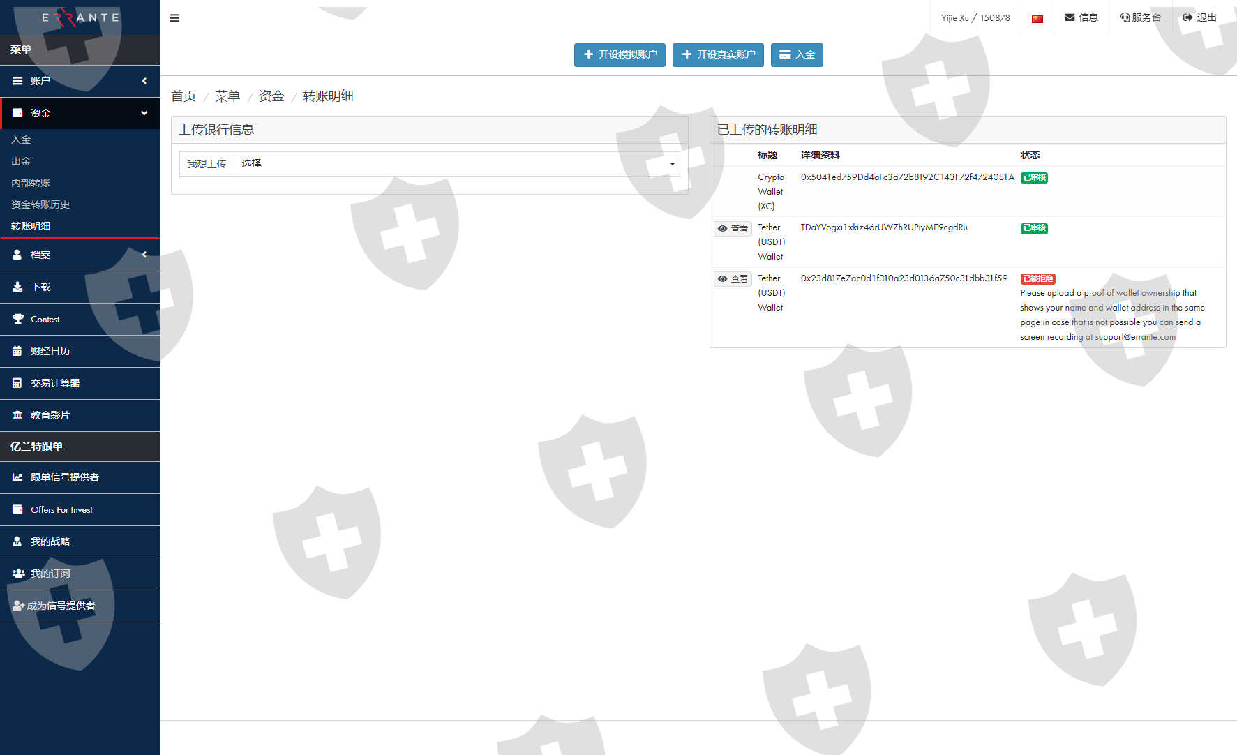 黑平台,只能进不能出,我出金选用trc20出金,平台给我拒绝,理由是资金返回需使用erc20,随后我又绑定了erc20,平台又拒绝出金理由需要上传交易所姓名以及钱包地址,询问平台客服之后,平台客服居然说我入金的网络是bep20,我入金使用的是欧易交易所,笑死交易所都没这网络,客服随便又说,我必须绑定bep20钱包地址才可以出金,纯纯黑平台,只进不出