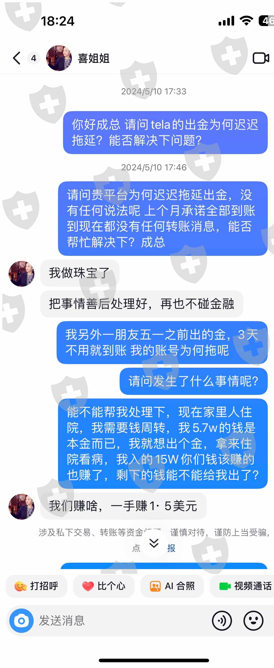 tela不给出金 代理人失联 彻头彻尾黑平台