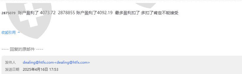 账户盈利了4073.73还有个账户盈利了4092.19说我违规操作,盈利扣了就算了,一个账户还要多扣了1450还有个账户多扣了1226,我说不同意,这个黑平台直接耍赖,还要扣除半年交易得来的所有的盈润,给本金出金,本金卡着还不给审核,妥妥的黑平台