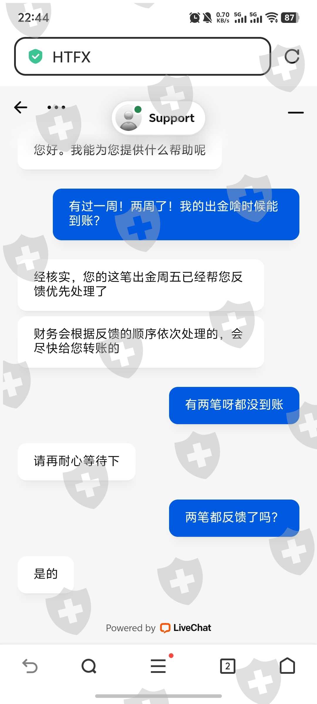 两周了,两笔出金共计600刀的出金无法到账,平台回复等,两周出金不到账,一共600刀两周出金无法到账?!就说会处理,然后不到账。