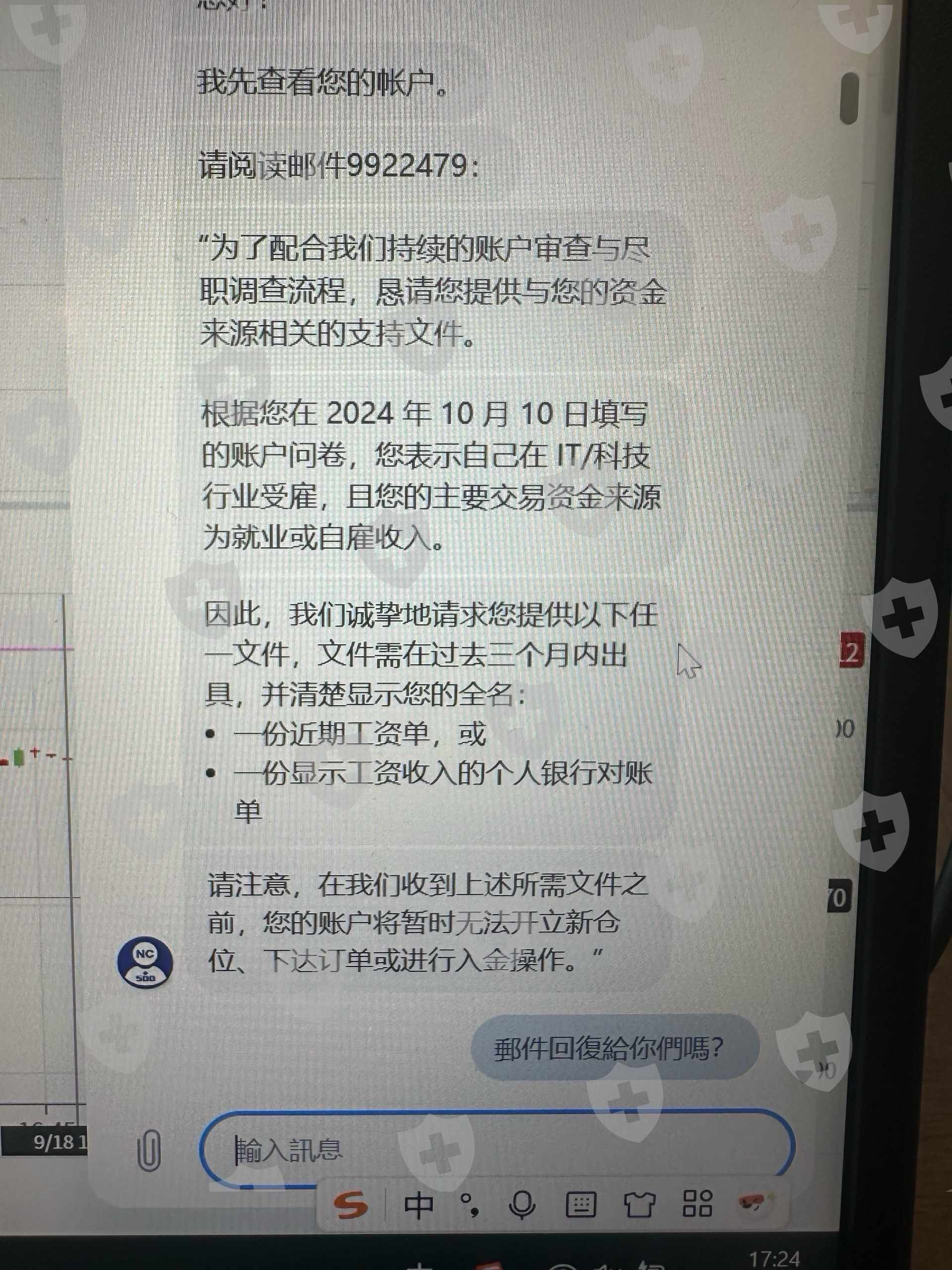 出金申請了一個多月了,剛開始要收入證明,提供工資證明後,兩周後才答復我說要提供工資流水和地址證明,我也提供了,然後一個多星期過去了,還是一直審核,不給時間不給結果。