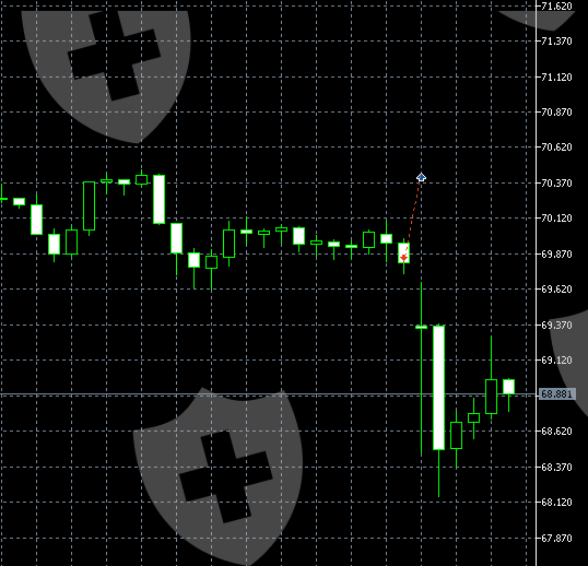 但全程 K 线行情清晰显示:该时段市场从未出现过 70.445 这个价格,开盘后价格也远低于此价位。