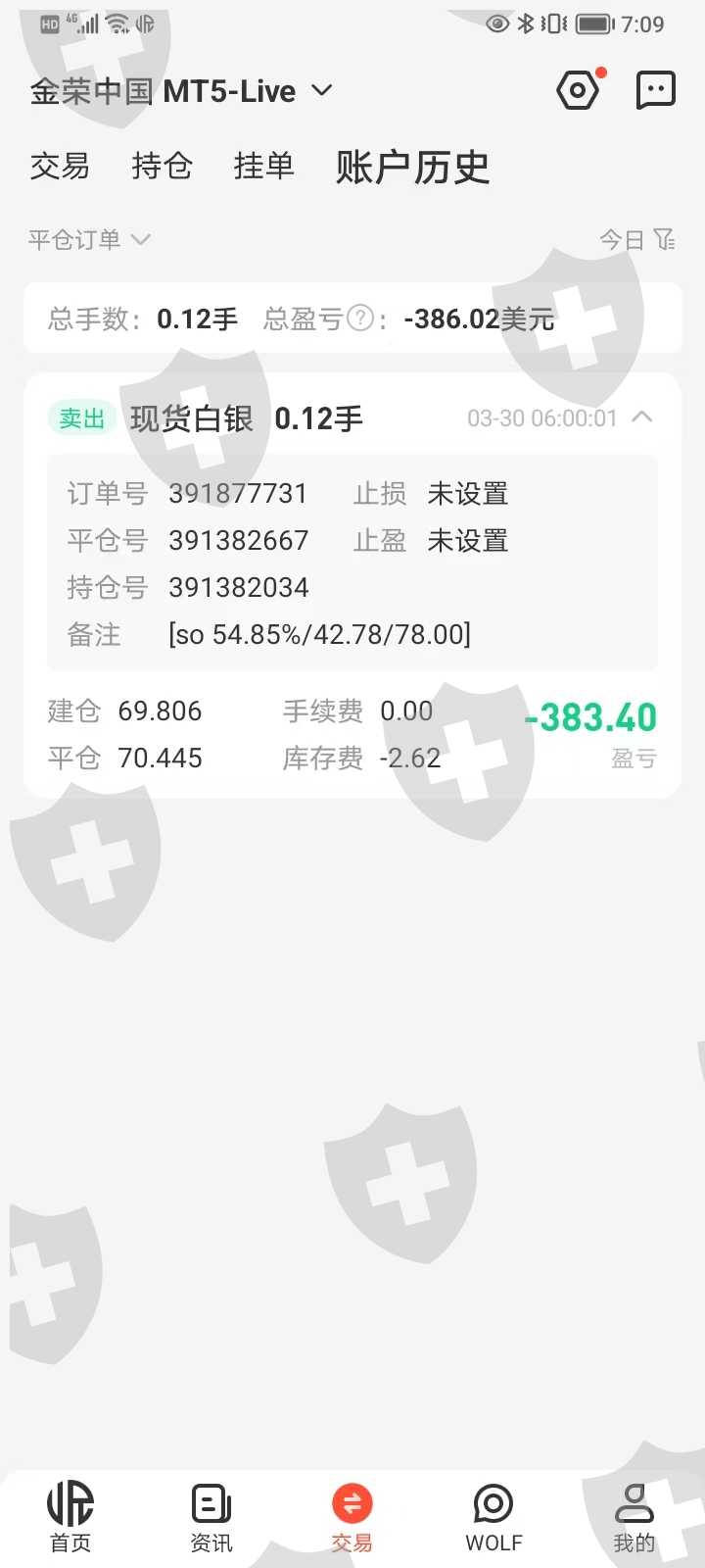 本人在金荣中国交易现货白银 XAG,2026-03-30 06:00 开盘瞬间被平台以70.445价格强制平仓,亏损 386.02 美元。
