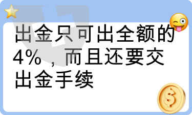 出金只可出全额的4%,而且还要交出金手续费,这样算下来莫说出金的钱还不够交手续费,这是变相要挟出金!希望大家远离这种坑人的平台!