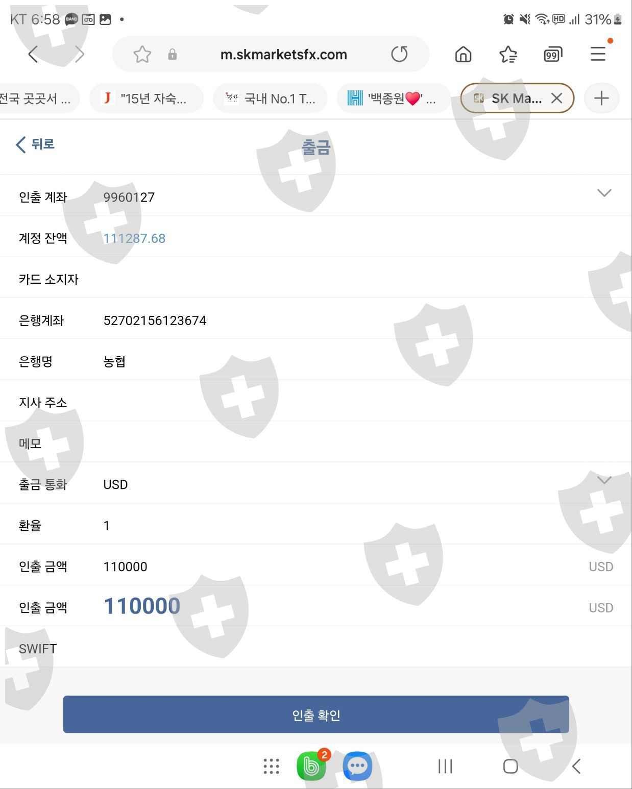 출금 불가