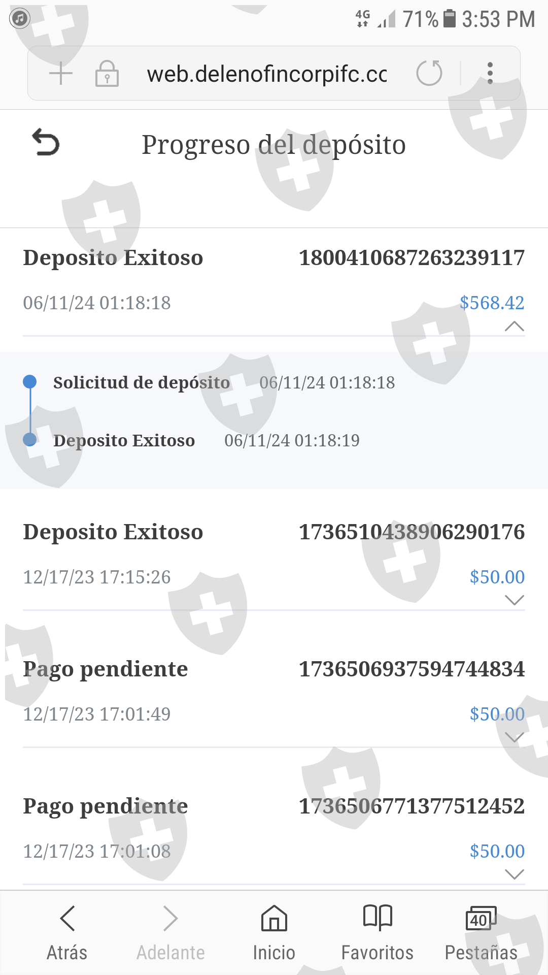 一群信任这个平台的人被骗了。 Deleno IFC他没有骗取在这个平台上存入的资金,他为我们提供了非常好的佣金来组织团队,一切都很顺利,利润很高,但由于更新错误,他们使我们的帐户翻倍并要求我们退款。我们收到的金额是不可能的,我们的账户也被冻结了,我们一无所有,我们需要帮助。