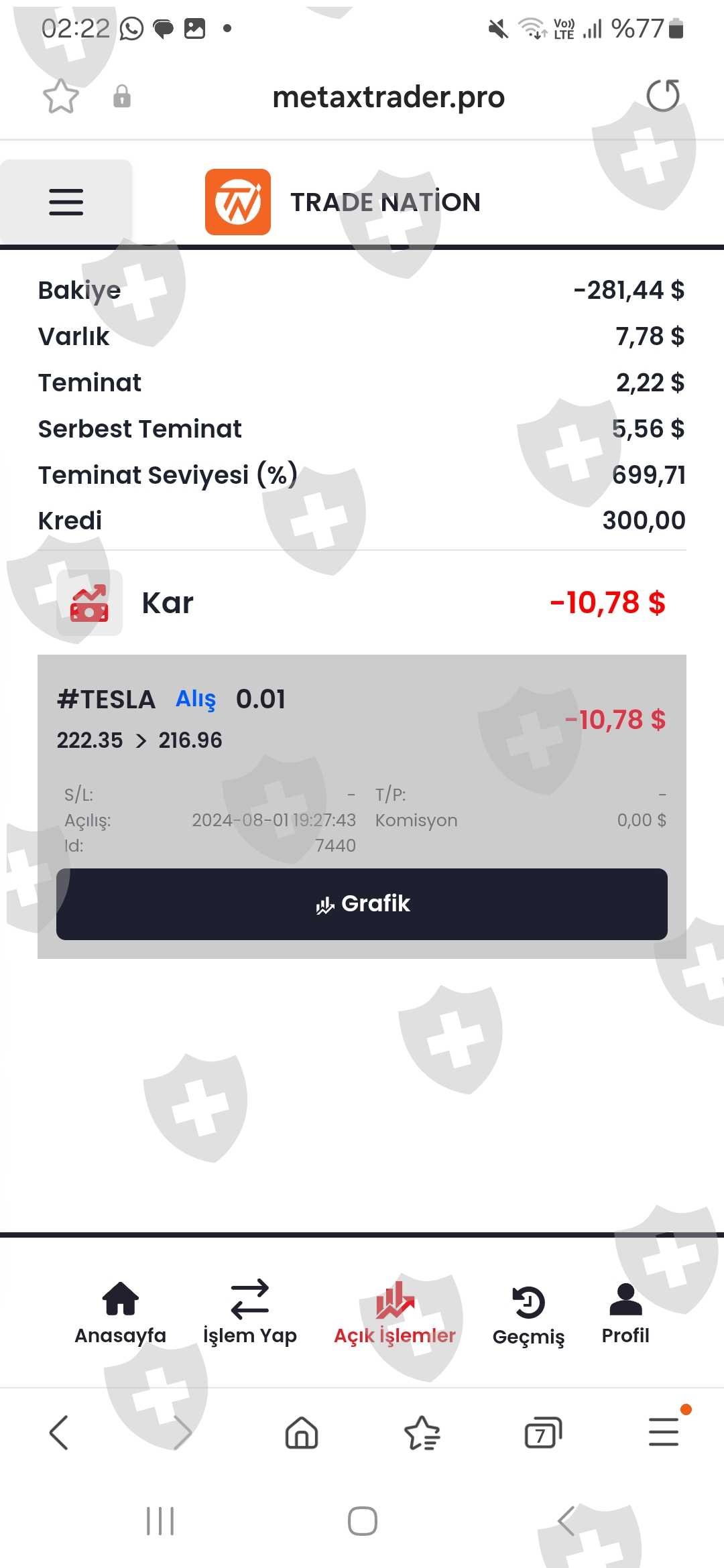 Trade nation isimli kurumda hesap açtım hesap açtıktan sonra hoşgeldin bonusu diyerek 150 USD yüklediler hesabıma ve kâr çekimi yapabileceğim söylendi. Sonrasında kâr çekimi yapabilmem için 500 USD yatırmam gerektiği söylendi. Kurumda işlem açıyorsunuz ama açtığınız işleme ilk başta TP ve sl noktası koymazsanız o işlem kapanana kadar başında beklemek zorunda kalıyorsunuz. Gece kaç kere uykusuz kaldım zararda kapatmayım dedim bekleyim dedim araştırdım TP ve sl de koyulmuyormuş sonradan ilk işlem açtığınızda yapılması gerekiyormuş böyle bir kurumda bunun olması açıkçası çok garip geldi ve beni çok zor durumda bıraktı. Hedge pozisyon açılamayacağını da maalesef sonradan hesabım giderken öğrendim keşke kuruma yeni gelenlere bu bilgileri verseniz. Maalesef benim hesabım bunlardan dolayı battı siz de gelirken bunları göz önünde bulundurarak gelin yoksa hesabı beklemek zorunda kalırsınız.