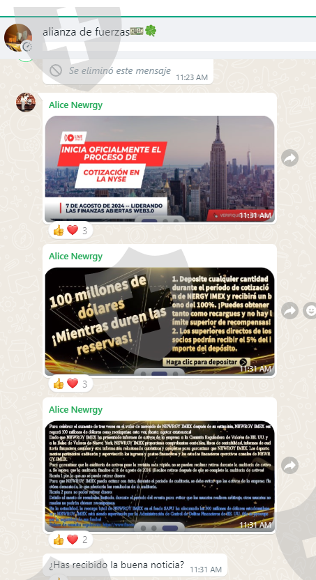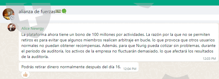 De súbito el anuncio de que por una supuesta auditoria (no dice de que firma de auditores) para cotizar en la Bolsa de Valores de New York, se nos informa que ese mismo día del anuncio (06/ago/2024) que se suspenden los retiros de fondos hasta el día 16/ago/, pero eso si, lo que no se suspende son los depósitos. Podría calificarlo también de fraude inducido.