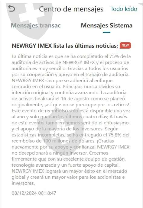 Vengo a exponer a newrgy imex ya que aproximadamente hace una semana (6 agosto) la aplicación no deja hacer ninguna clase de retiros por la cotización en la bolsa en NY y si deja hacer depósitos con bonos extrañamente exuberantes.