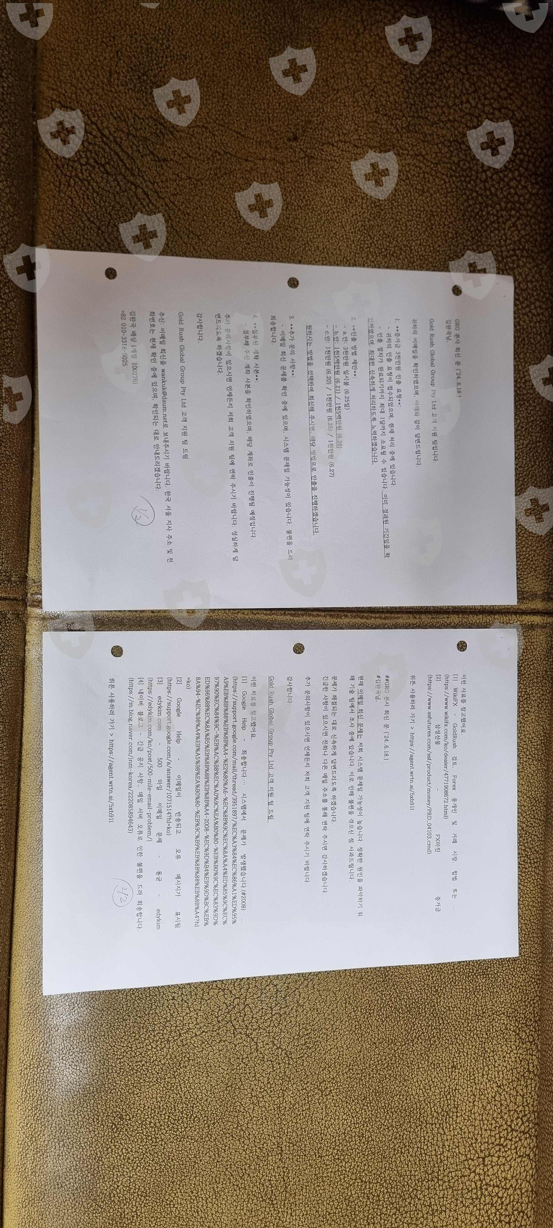 GoldRush我们将平台公司揭露为综合犯罪中心,包括民事和刑事欺诈。主要细节如下: 1. 4个月后,要求提取3000万韩元保证金的请求中有4项失信行为。 2. 因场地中断而导致的约9000万韩元的清算金额尚未结算。 3. 转账1300万韩元货币兑换费时,24小时内退款,但没有退款。 4. 追加1000万韩元验证费的请求已无效。 5. 4次违反提取3000万韩元保证金的承诺。 6、存在公司邮件沟通渠道缺失、韩国分公司存在欺诈行为、提取保证金时被要求额外费用等问题。结果,举报人遭受了严重的经济和社会损失。我们已附上相关证据并要求采取积极行动 - 我们将欺诈、敲诈勒索(盗窃)、贪污、背信、虚假酷刑和恐吓作为现有犯罪的综合部门予以揭露。 **附材料** 1. 货币兑换。费用汇款详情(约1300万韩元)和3种经销商背景截图(第二次披露时必须提交附图,以表明保证金为53,336.35美元) - 2pp 2. 4个传入电子邮件回复/ 2-1. 1 份发送电子邮件(2 页) 3. 1 份邮局帐户副本(帐户持有人 Kim Wan-guk 邮局 014027-02-042898) **记者:** Kim Wan-guk 帐户 [(韩国+82,010-3318-5025)帐号100276]
