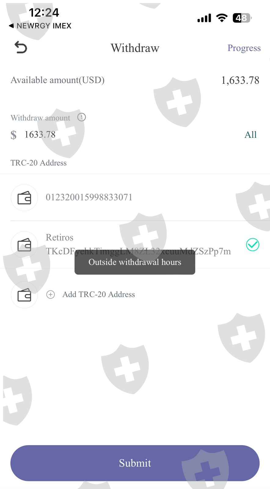 首先,由于涉嫌在美国证券交易所上市,提款被暂停,有评论称将在特定日期开放。当该日期到来时,我尝试提款,显然平台允许,但几天后它“退回”了提款,但现在它不再允许我再次尝试提款,并说“在提款时间之外”。 ”