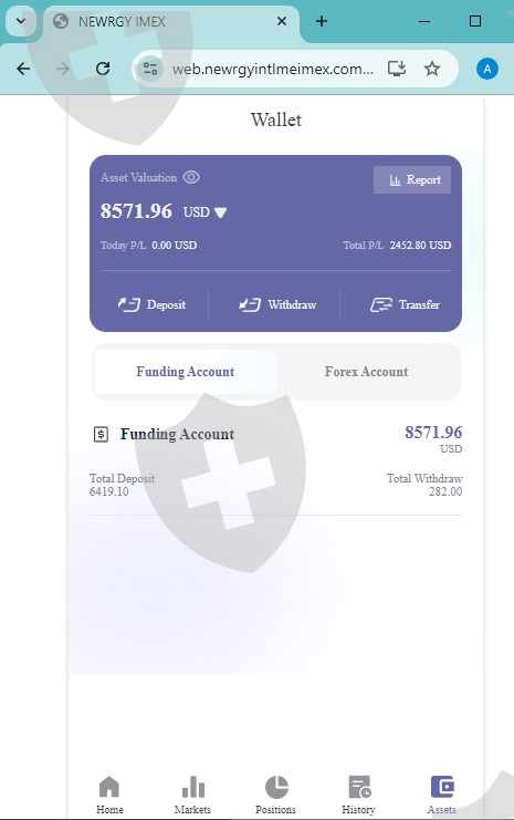 我在Newrgy平台上投入了6000多美元进行交易,从8月5日起,他们以纽约证券交易所上市审核为由,全面封锁了提款功能。现在它收取总资金的20%作为IRS税,如果这笔款项在8月26日之前没有支付,我们的账户将被永久冻结。这伤害了我和其他人,因为我们投资了大量资产。我希望您能帮我收回我投资并在平台内冻结的资金。