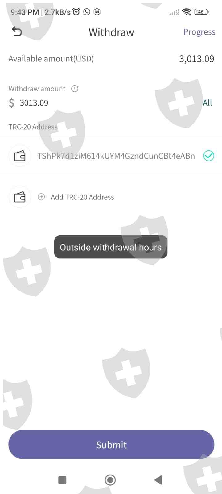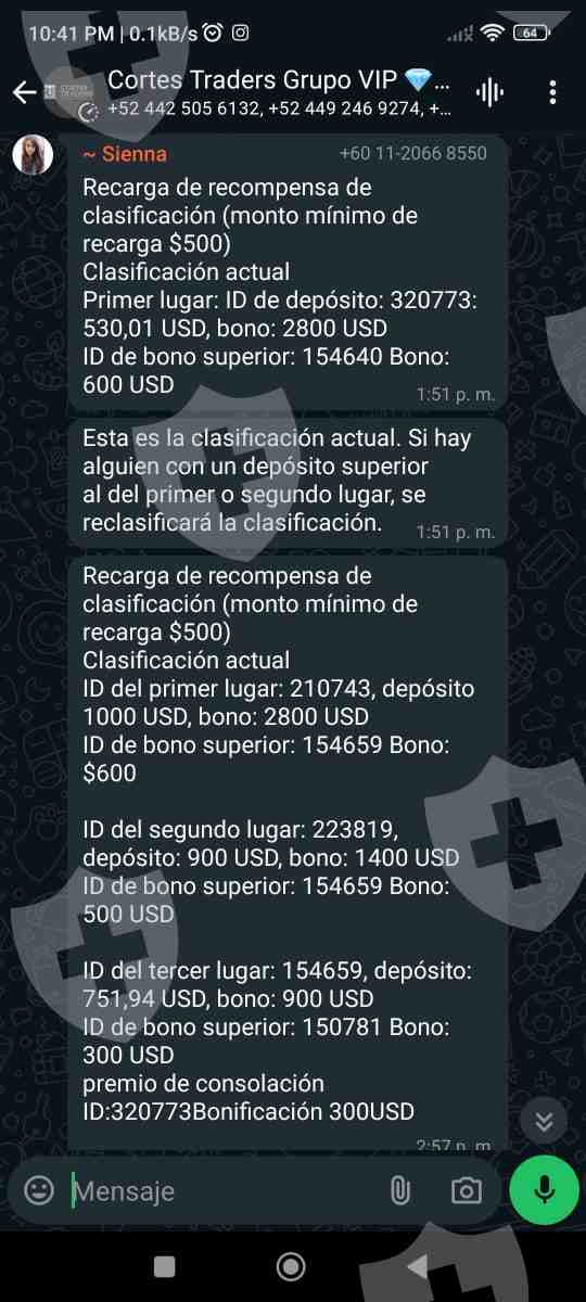 从8月6号开始,因为所谓的审计,我们不能提款了,本来8月16号开放提款,但是接下来的几天不让提款,所以我们不得不等到8月19号,这一天他们取消了我们之前的提款。现在他们威胁我们,我们必须在 8 月 26 日之前缴纳“税”才能提款,否则他们将冻结我们的账户和永久提款的能力。在此期间,当您存款时,他们会以 100% 的奖金鼓励我们,我们中的几个人都在 WhatsApp 群组中,我们有一位所谓的领导者,他向我们发送了投资的特权信号,奇怪的是,在过去的几天里,她还提供了额外的奖励给平台投入最多资金的人