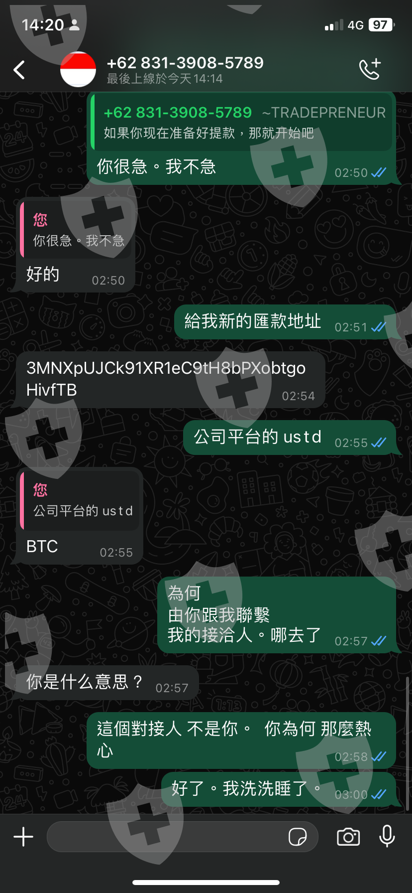在WhatsApp上,他介紹了一位所謂的「專業經理人」,並說服我將資金轉入他們指定的地址,承諾會由這位經理人代為操作。經過兩天的操作,我的賬戶顯示盈利了2800美元。當我要求提款時,對方卻告訴我需要購買額外的「交易訊號」才能進行出金操作。