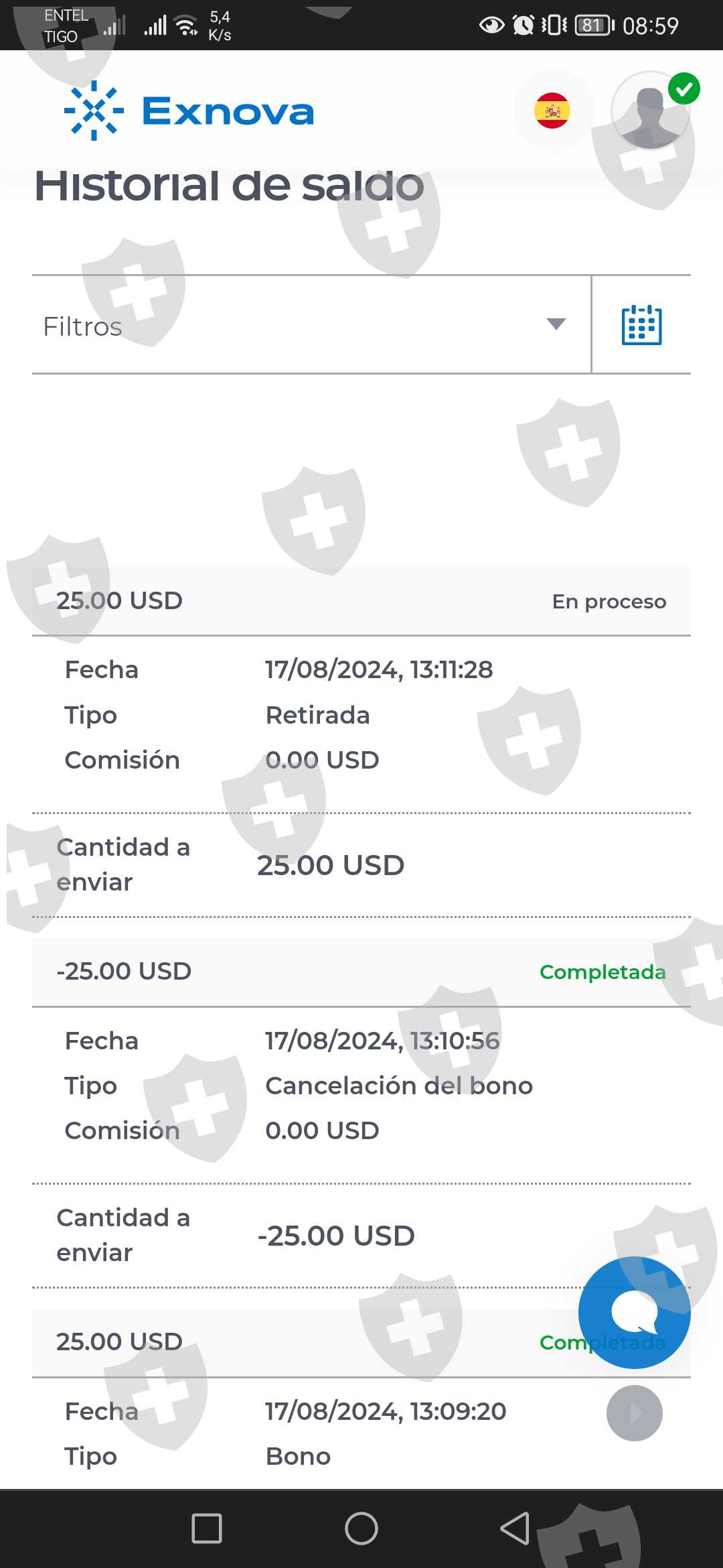 我提取了 5 天多前存入的资金,但我的银行帐户尚未收到任何款项,但在 ex nova 平台上,它显示为已提取,但什么也没有到达