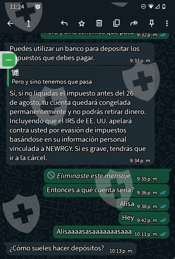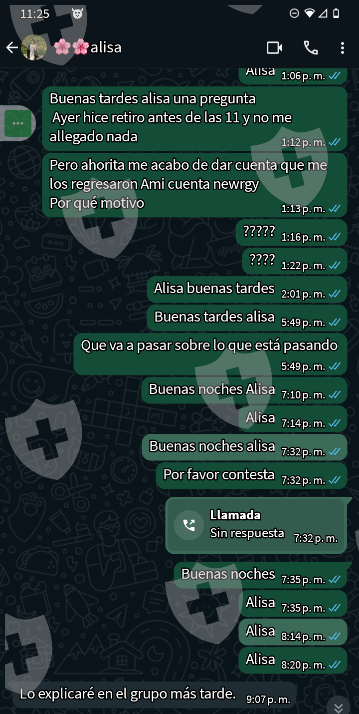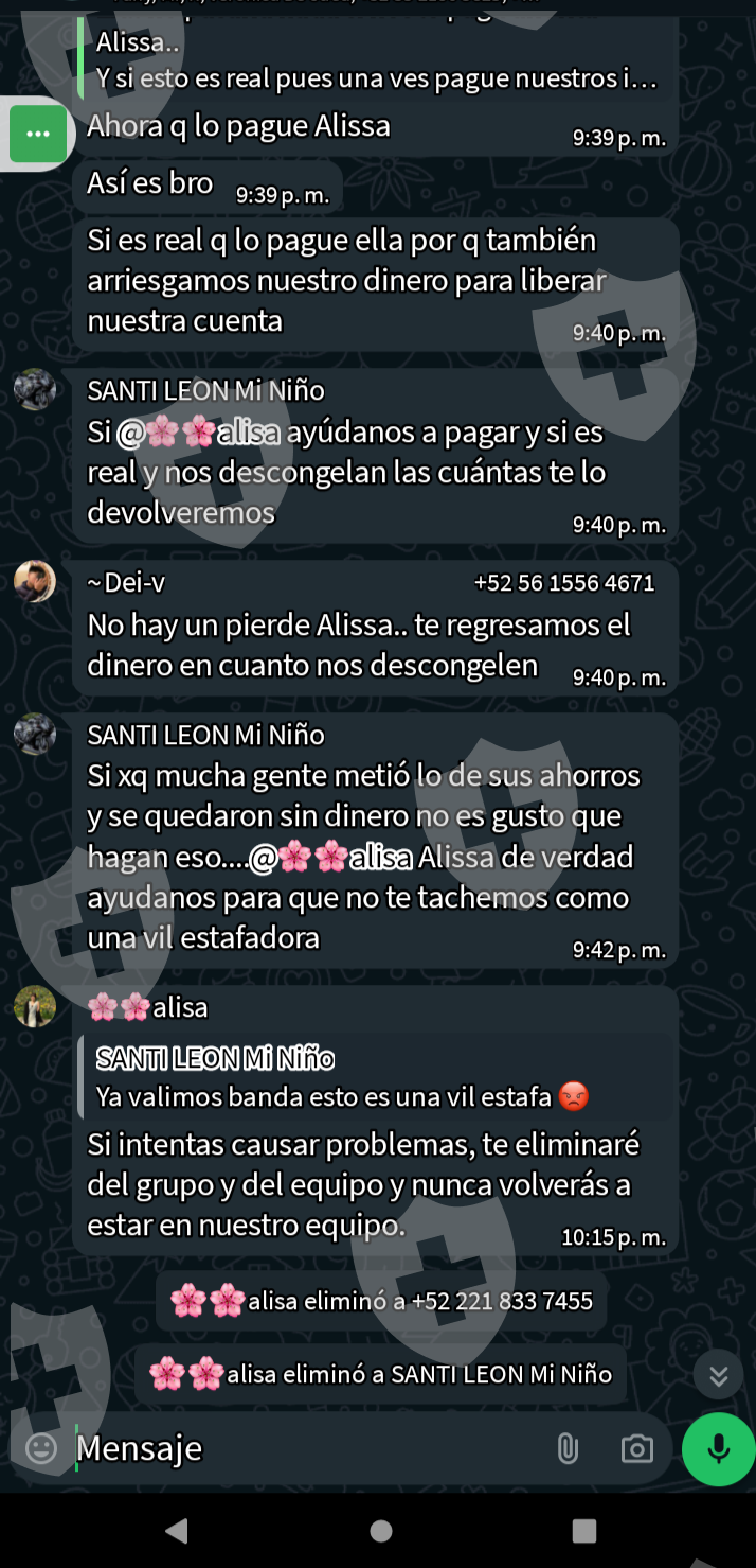pero también que nos asegura que pagando esos supuestos impuestos nos reactivaran nuestras cuentas para hacer retiros bueno aki les dejo unas evidencias y con la estafadora que se llama alisa