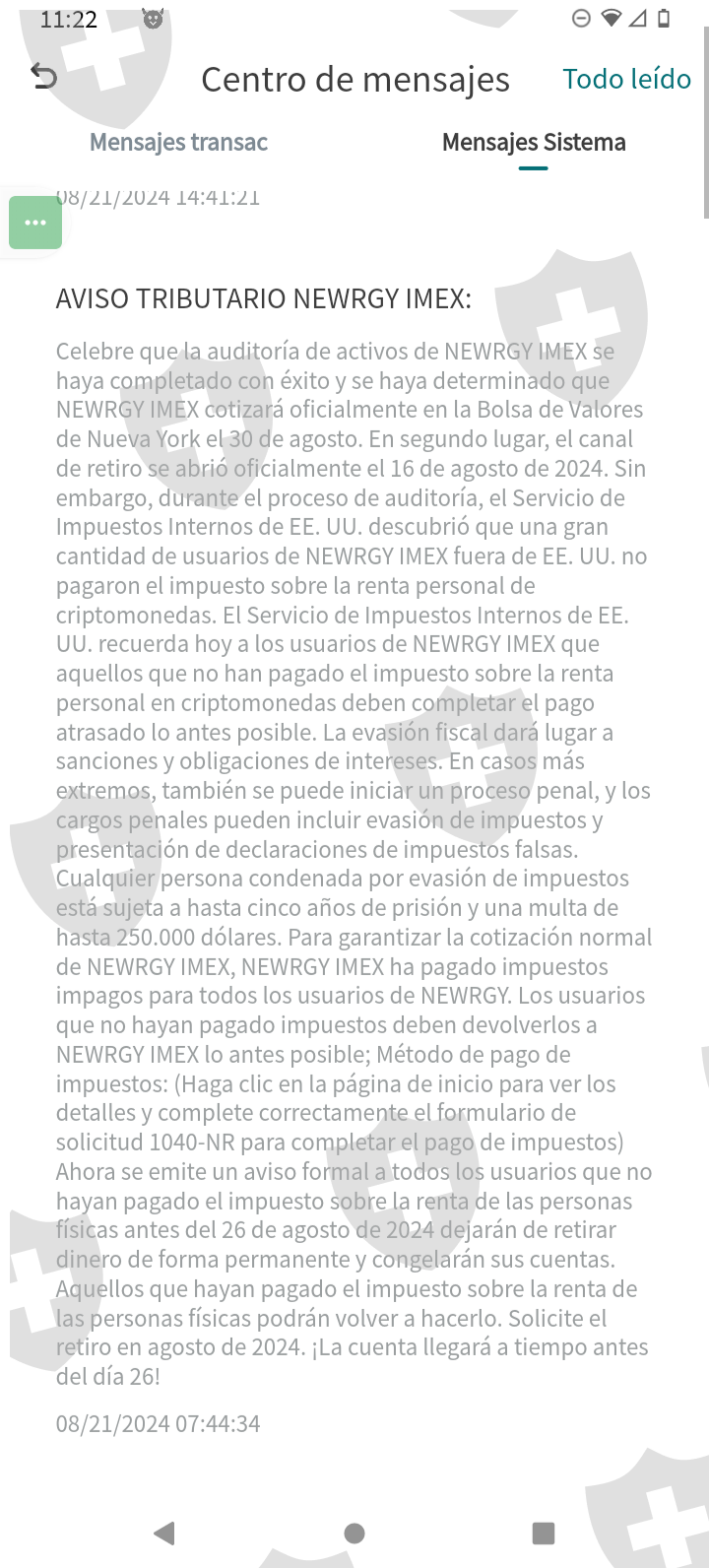 no nos dejan retirar después de la auditoría que paso supuestamente tenemos que pagar impuestos el 20% de lo que tenemos en nuestras cuentas Pero que tenemos que pagar aparte de nuestra bolsa y no de la app dónde cuenta con nuestros fondos y sino pagamos nos están amenazando que nos congelarán nuestras cuentas permanentemente y aparte pagaríamos una multa de 250.000 dólares y si no también se irán a un caso más grande ir a prisión por 5 años