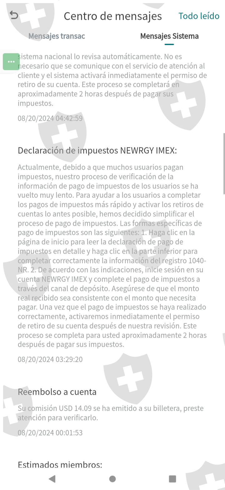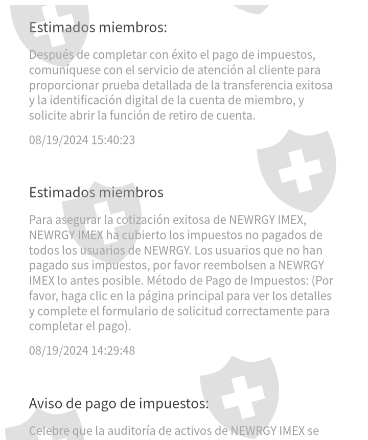 他们不让我们在审计后提款,据说我们必须缴纳账户中 20% 的税款,但是我们必须从我们的钱包中单独支付什么费用,而不是从拥有我们资金的应用程序中支付什么费用,如果我们不付款,他们威胁我们,他们将永久冻结我们的账户,此外,我们将支付 250,000 美元的罚款,如果不付款,他们还将提起更大的案件,并入狱 5 年,但他们也向我们保证缴纳那些所谓的税款,他们会重新激活我们的账户,以便顺利取款,我给你留下了一些证据,还有那个名叫艾丽莎的骗子