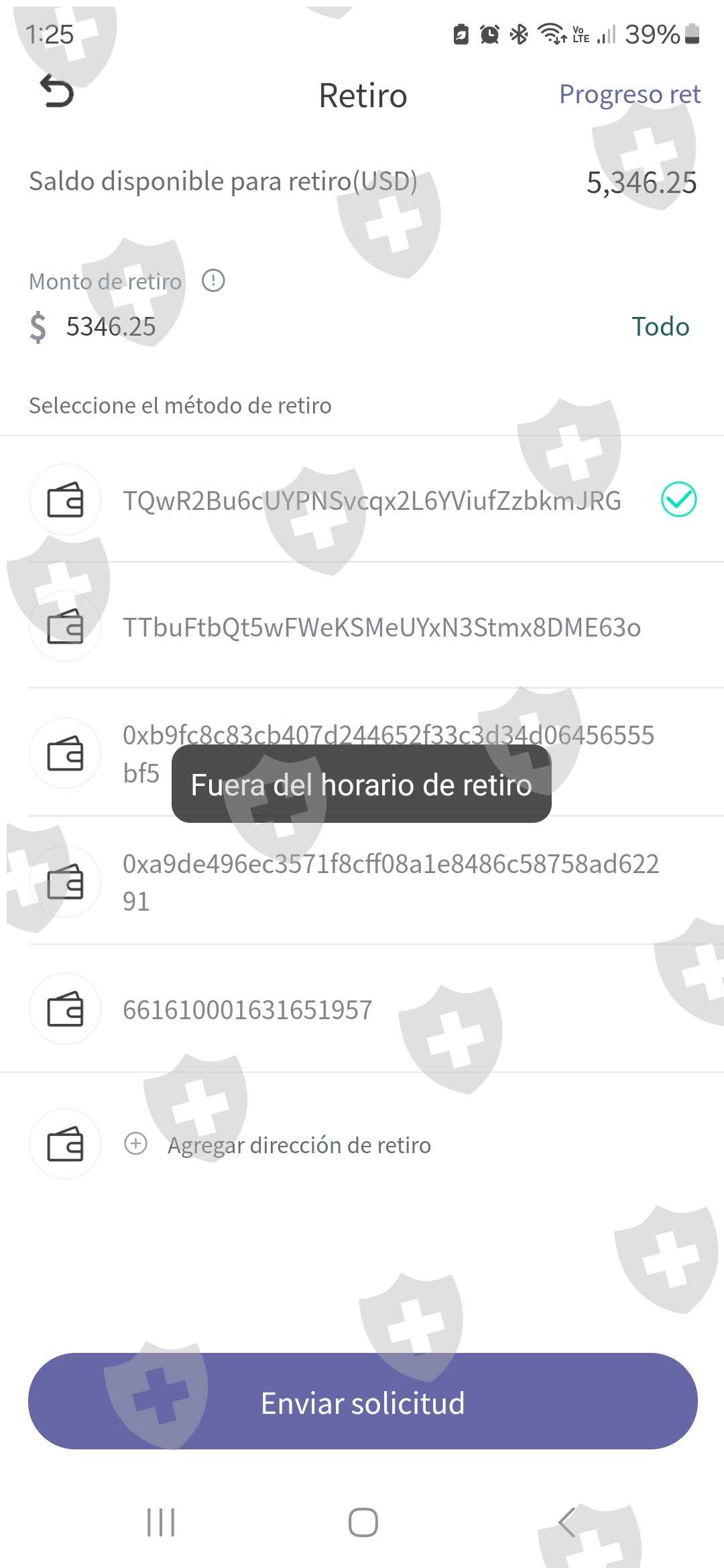 他们邀请我投资这个平台 NEWRGY IMEX,我存了几笔存款,我有证明,但是现在我想取款,它不允许我,它告诉我在服务时间之外,但是现在他们说我们必须付费才能取款,然而,我们大约有 70 人受到影响,就我个人而言,总额为 5346.25 美元,所以我请求支持来收回我的钱,因为我什至要求贷款,如果需要,我有更多证据