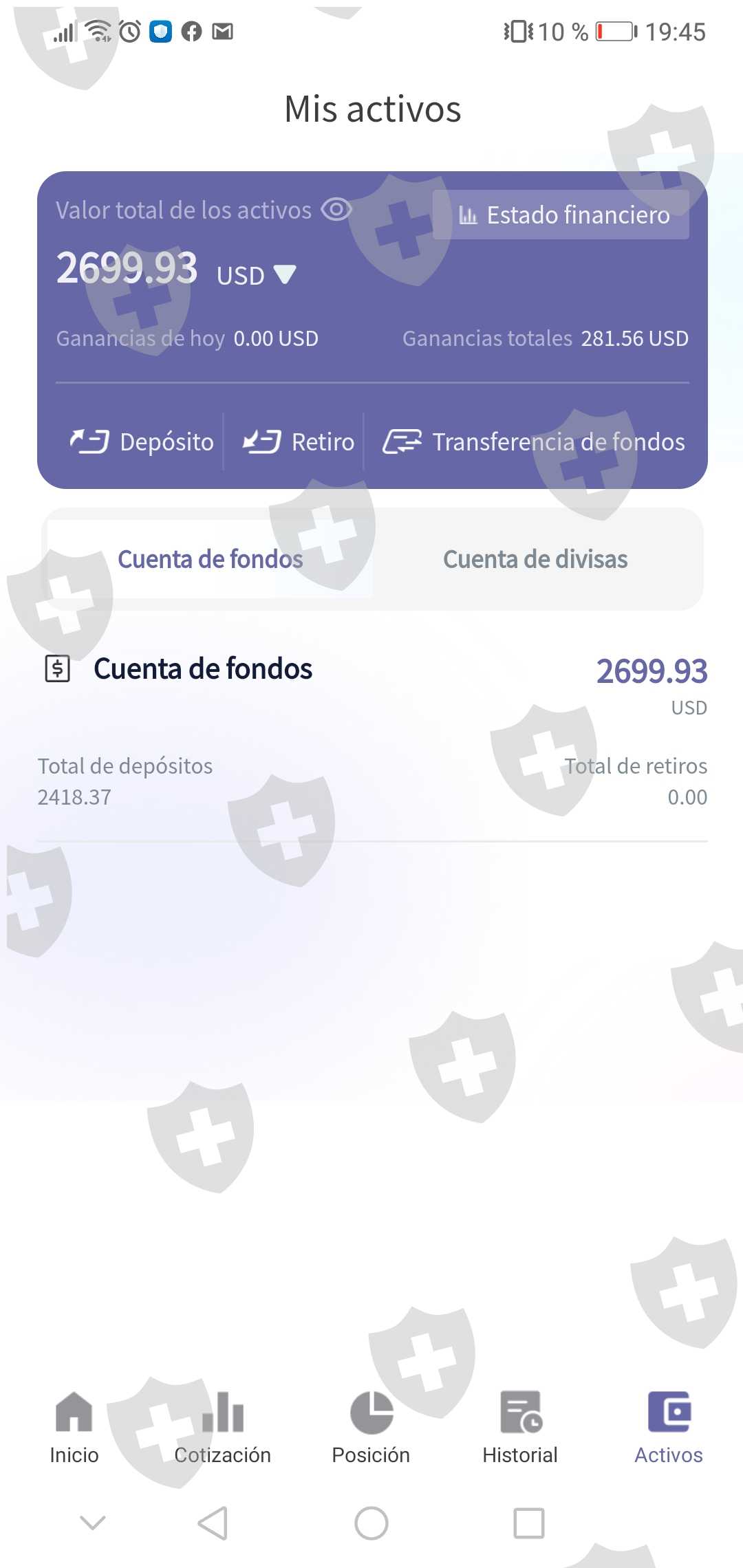 La plataforma de inversión después de aver depositado la cantidad de 1227.36 dolares Subió un comunicado dando a entender que no podríamos retirar nuestro dinero si no pagamos el 20% del valor de la cuenta actual que a lo que según tenía entendido muy cuenta tenía fondos de 2699.93 .