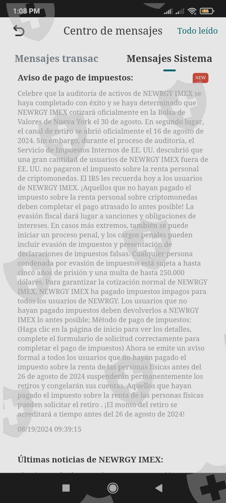Incapacitaron los canales de retiro por una supuesta auditoria, llegada la fecha de finalización de la misma y supuestamente permitir los retiros alegaron sobre un supuesto caso de falta de pago de impuestos cancelando la posibilidad de retiro que se habia comentado, pidiendo una cantidad de dinero para que se hiciera el pago necesario y de no hacer caso al pago que se pide congelando la cuenta de los inversores.