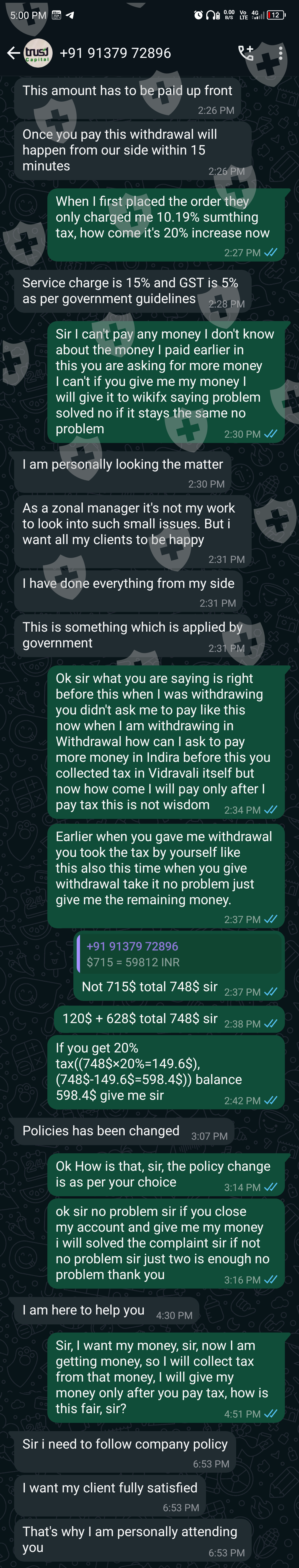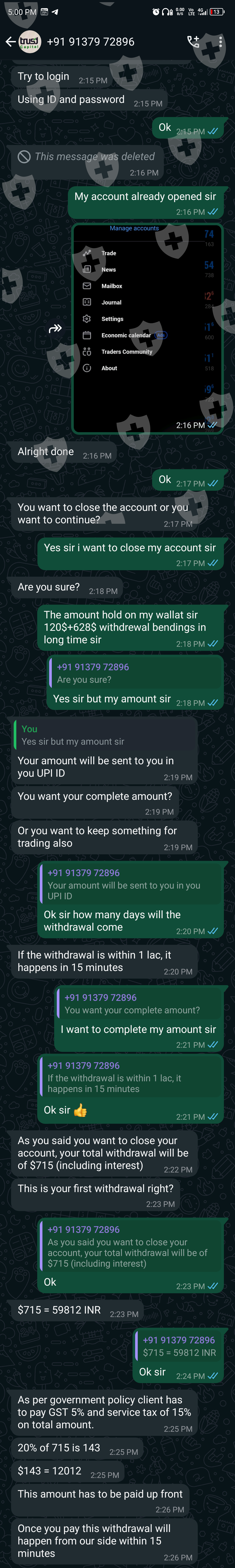 Hello everyone I had already complained about this brokerage and then after a few days they contacted me and said that if they claim that my complaint is fraudulent then they will close my account and give me my money, I told them that I am putting what you are saying now as a complaint against me. They said they will send it but they have not sent it yet and now last two days they contacted me and said I will close your account and give you money I said ok they said they will charge 20% tax from the money in your account I said ok keep it from the money they give me I said but for that they say I will give your money only if you pay that 20% tax then if we get a money then tax is deducted then we get money but if they say this then they are very bad brokers please people don't believe them they are bad so people BE VERY BEWARE THERE ARE MANY PEOPLE LIKE THESE SO THINK BEFORE CHOOSING A BROKER AND DECIDE DO NOT BELIEVE THESE DO NOT BELIEVE THESE ARE SCAMMERS