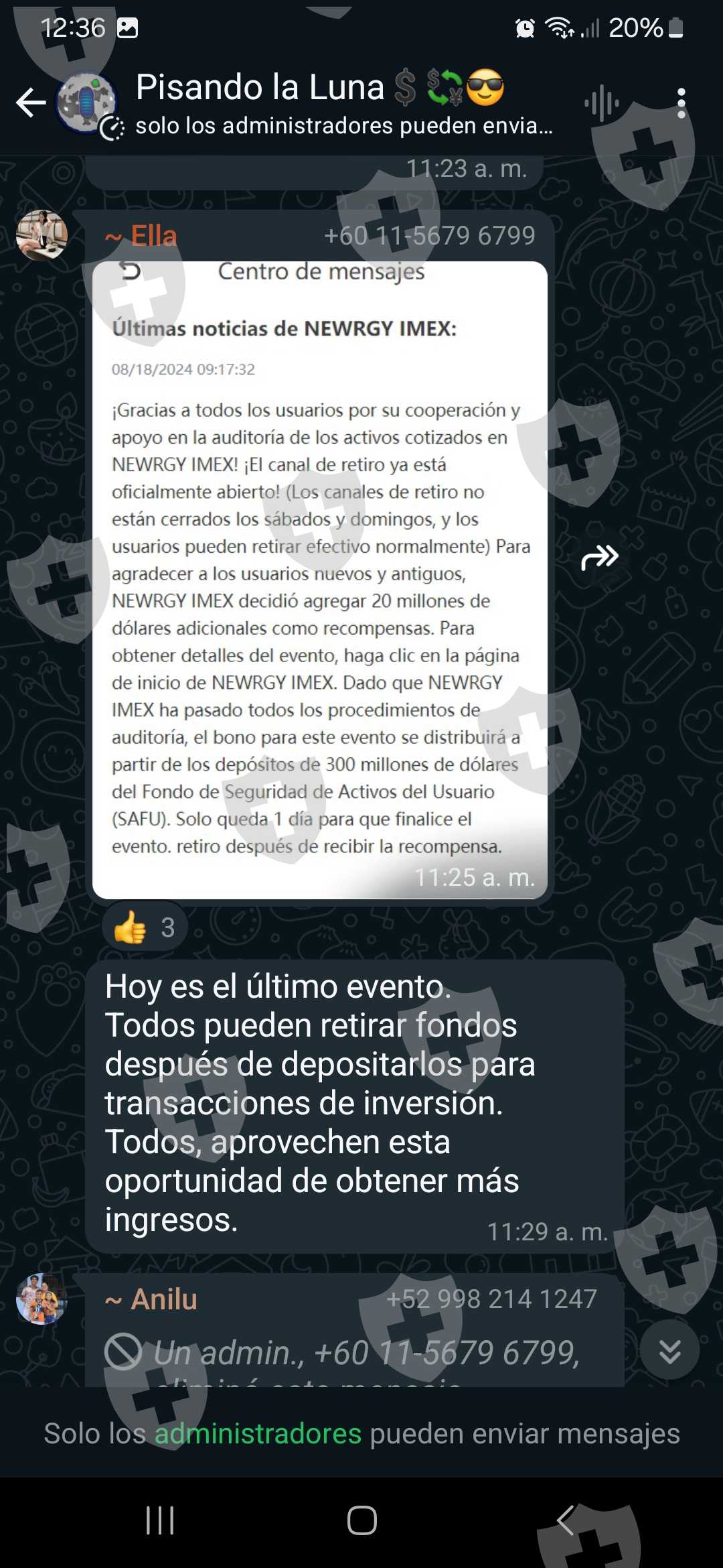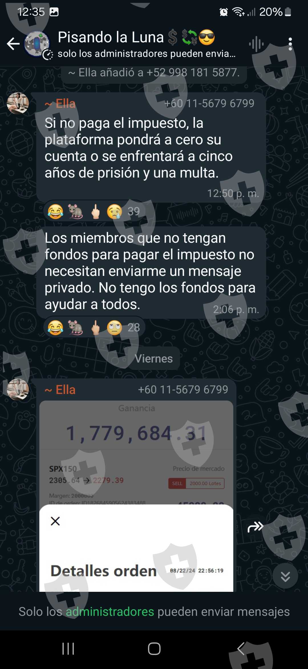 首先他们说他们正在接受审计,为了一切顺利,任何人都不应该拿出或投入更多的资金。他们说不用担心。几天后,我们总是可以存款但不能提取资金,以便审计过程能够顺利进行。为了激励更多人投资,他们宣传说你投资的钱会翻倍。如果您是投入最多资金的人之一,还包括额外的奖品。据说他们通过了审核后,哦惊喜,我们仍然无法提取资金,但为了更加迷上投资,马来西亚领导人邀请您参加新的促销活动,您投资了 x 金额,她借给了您相同的金额,系统将投资加倍,您将归还所借的资金。终于在这个周一,当大家发出提款请求时,又一个惊喜来了……我们必须缴纳余额的20%的税,否则8月24日之后,我们就都亏光了。