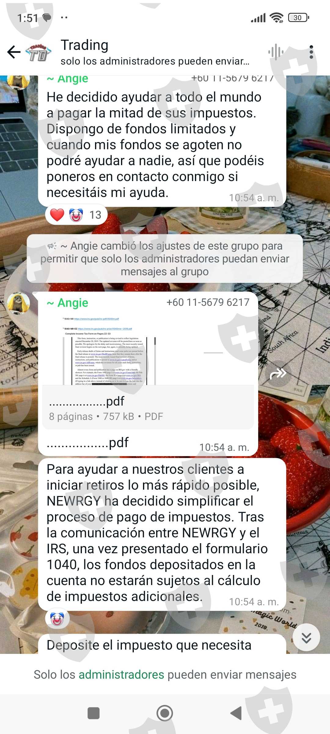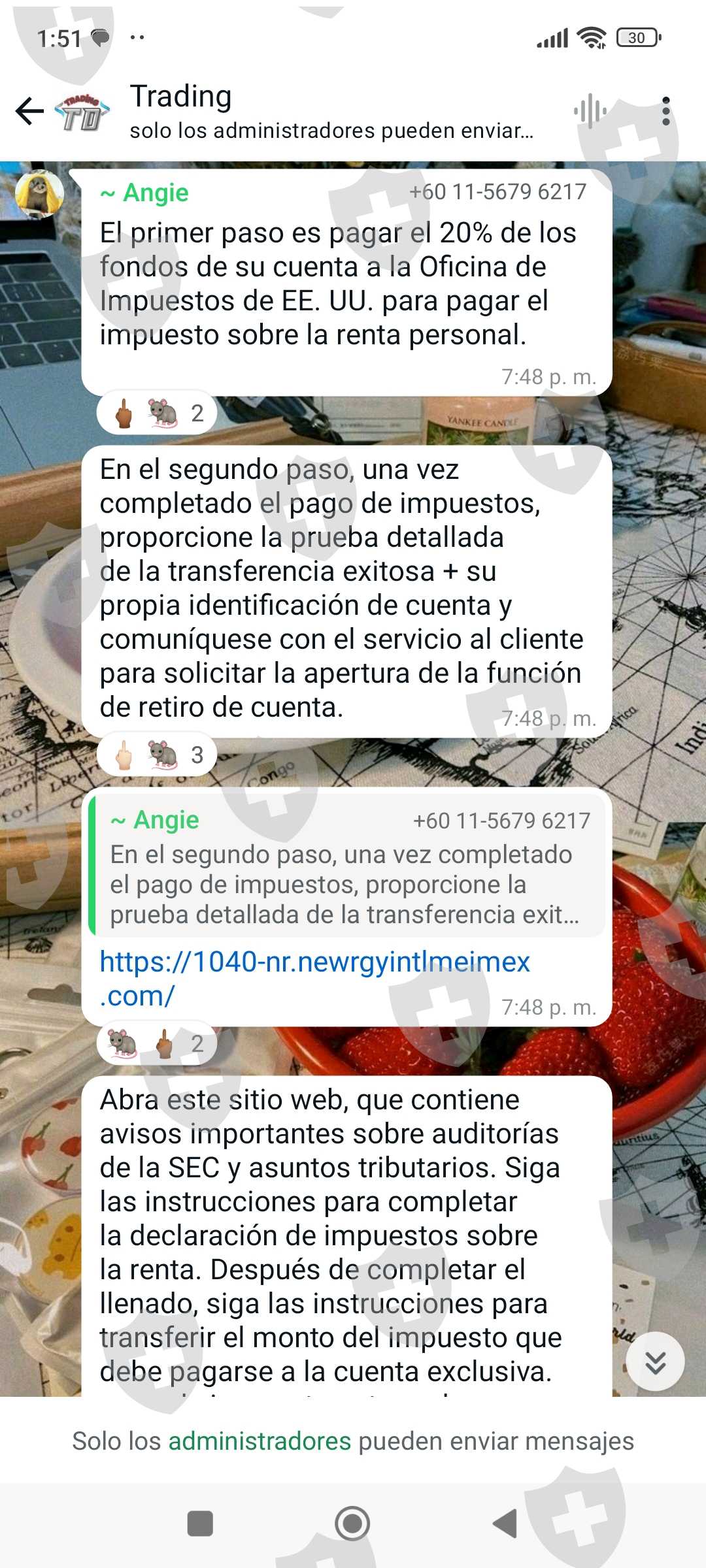 Posteriormente y llegando la fecha de retiro pusieron una nueva traba, ahora no se podía retirar por un supuesto pago de impuestos dónde se tiene que depositar un 20% del capital que se tenga para liberar los retiros.
