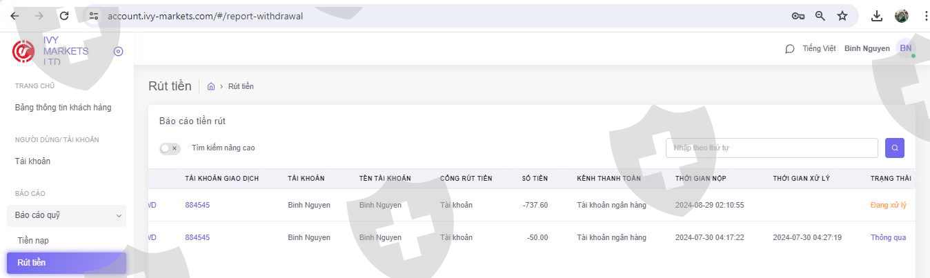 Không rút được tiền sàn Ivy Markets